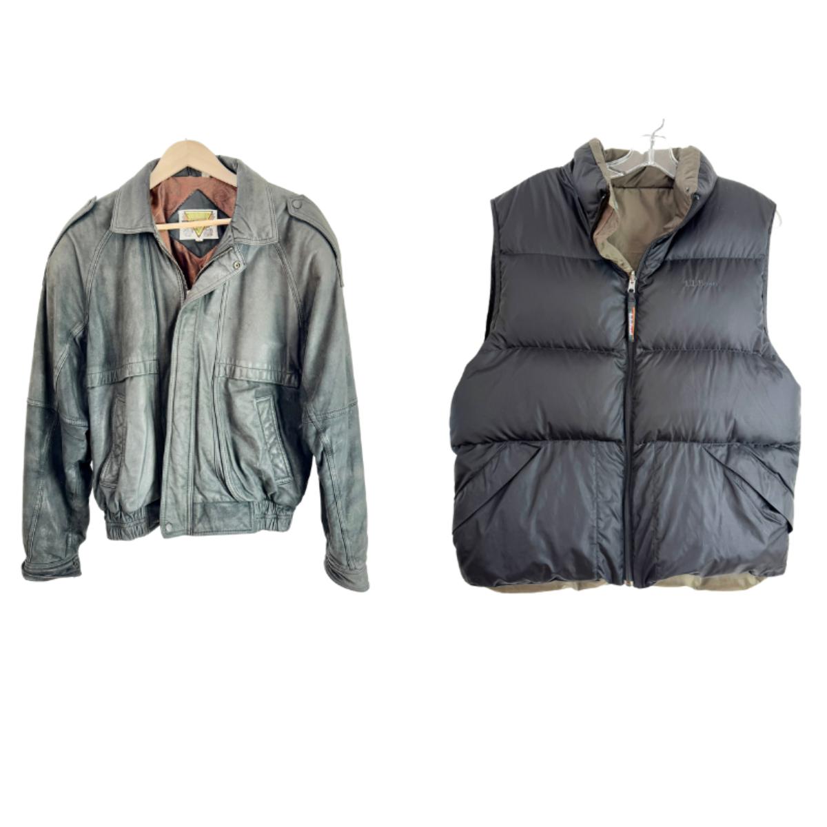 1223 Men's Medium Leather Bomber Jacket With LL Bean Vest