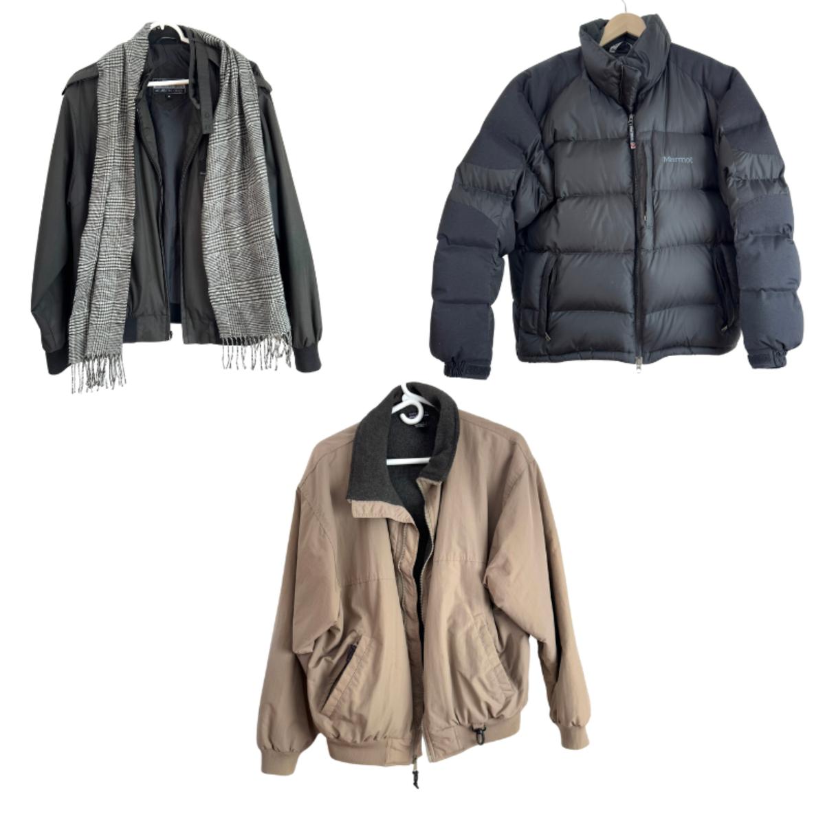 1224 Men's Members Only Jacket, Marmot Down Jacket, and White Sierra Jacket