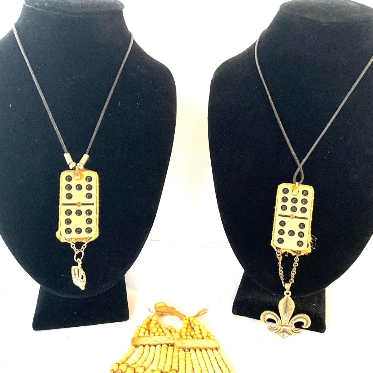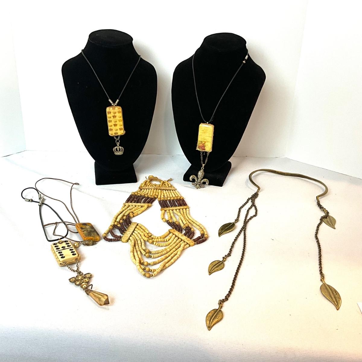 1225 Artisan Domino , Wood, Brass Necklace Lot