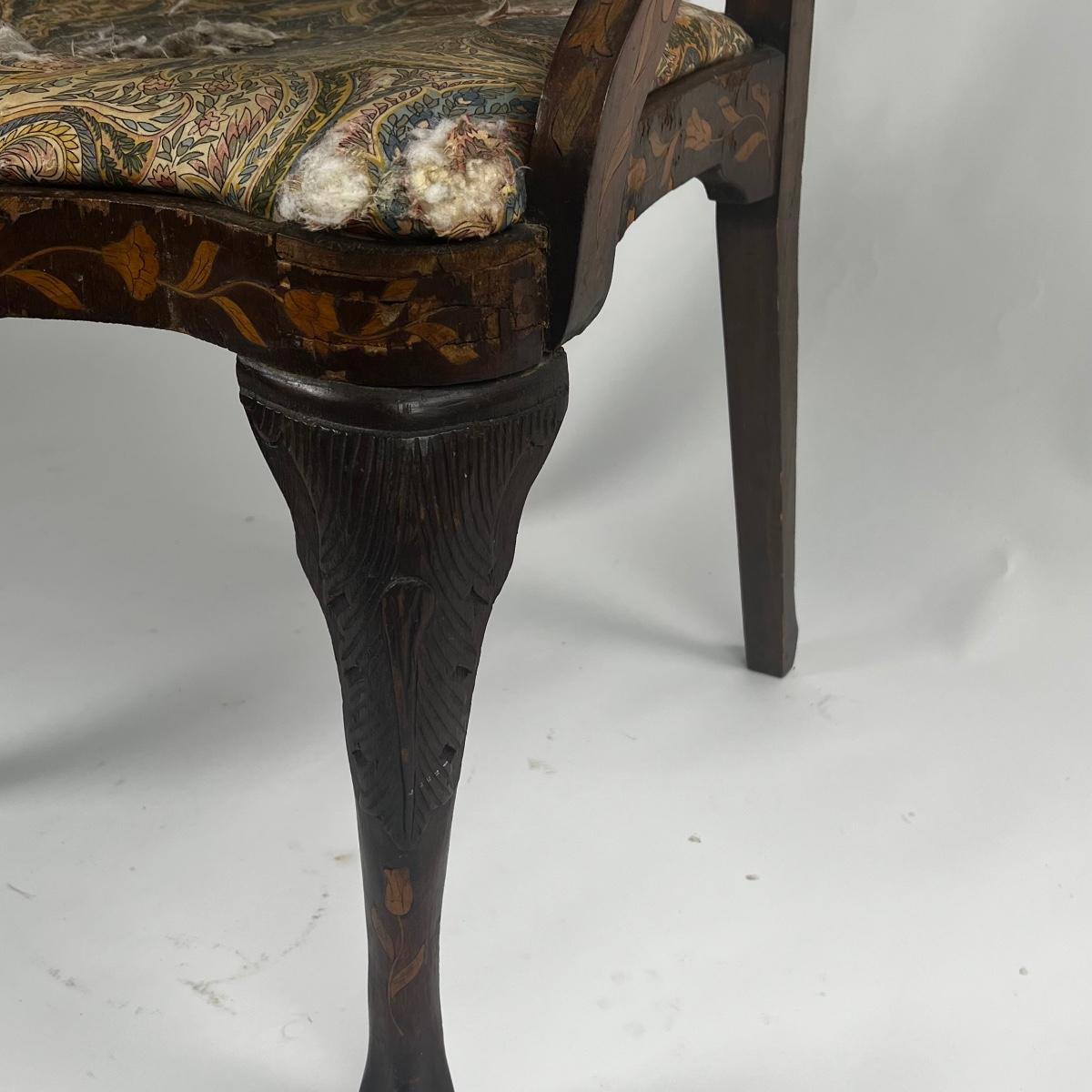 Antique Dutch Marquetry Inlay Arm Chair. Some missing inlay.