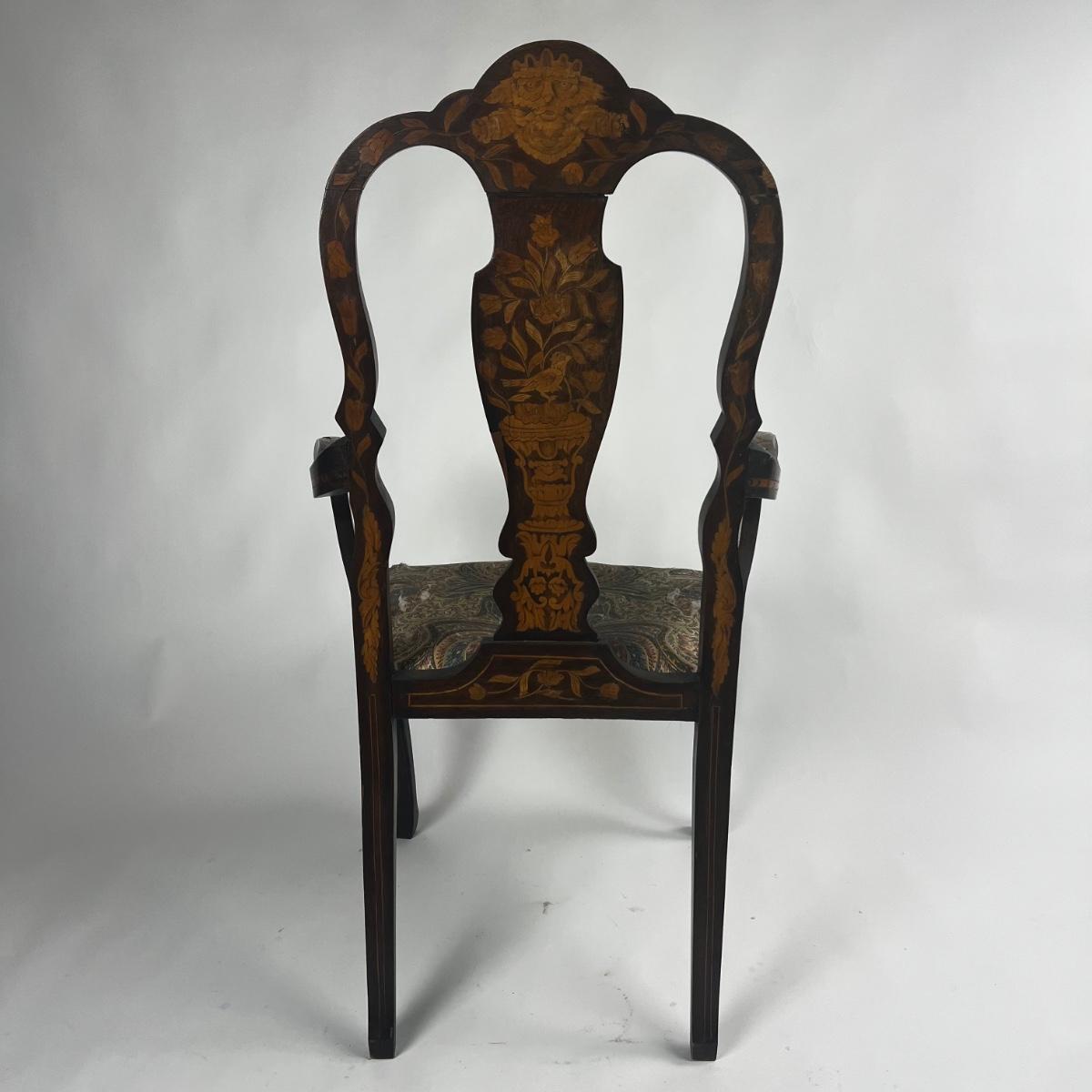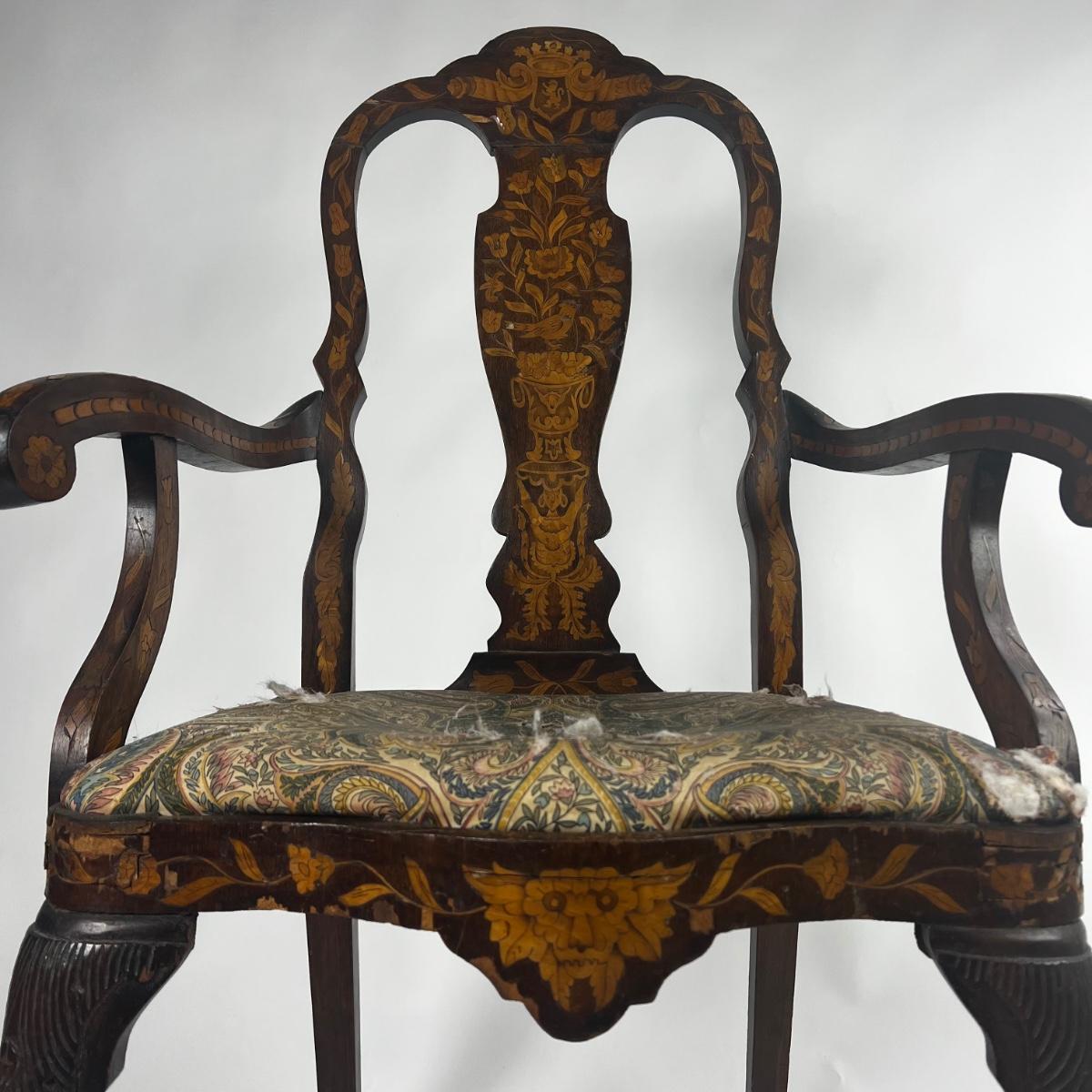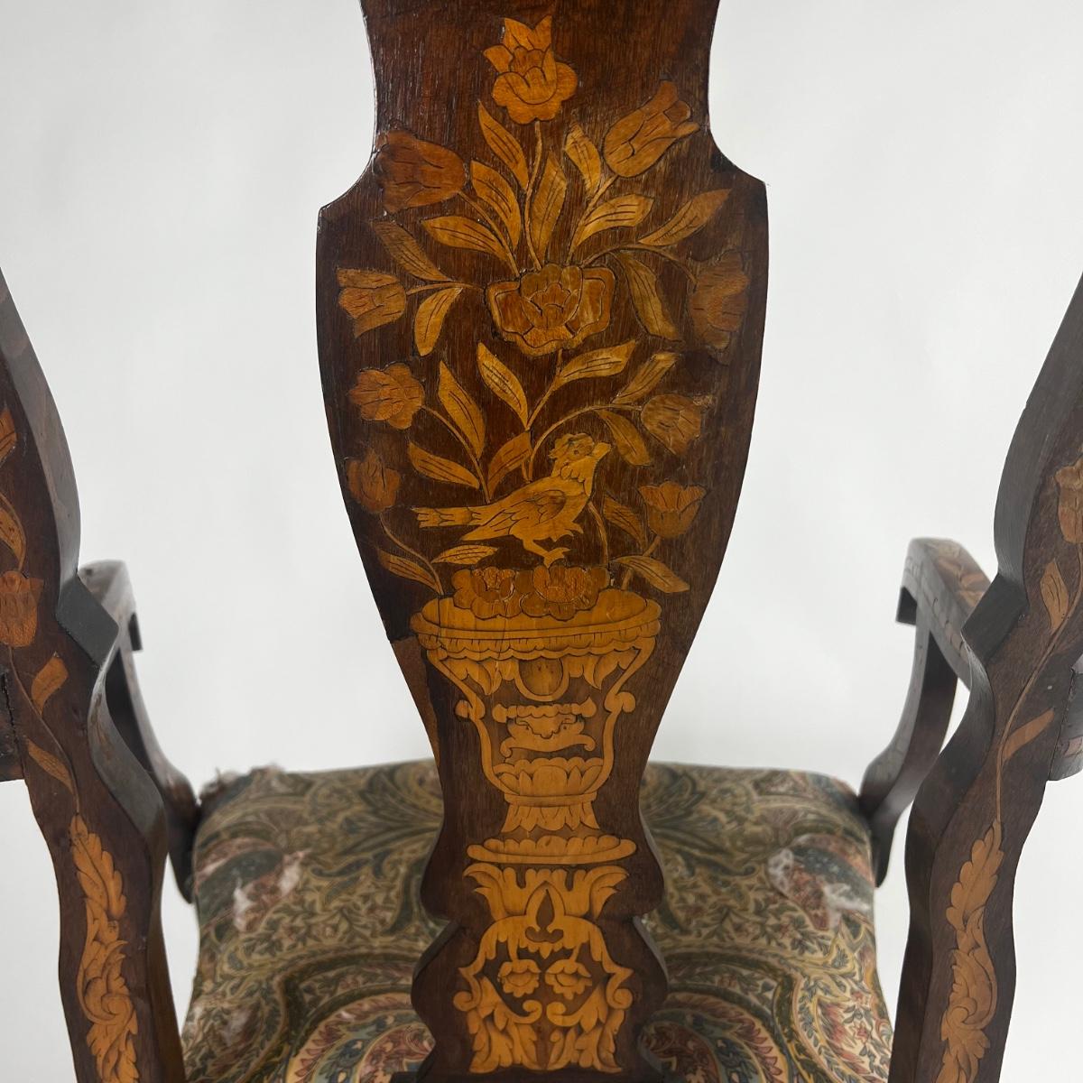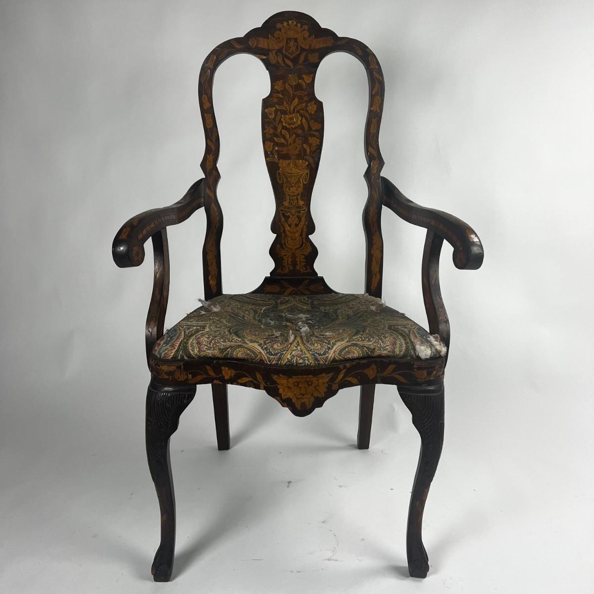 1225 Antique Dutch Marquetry Inlay Arm Chair