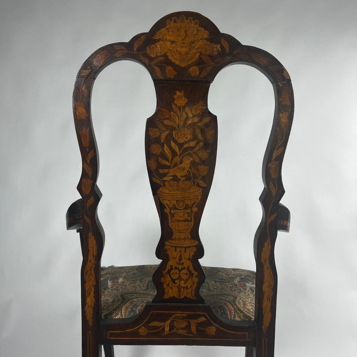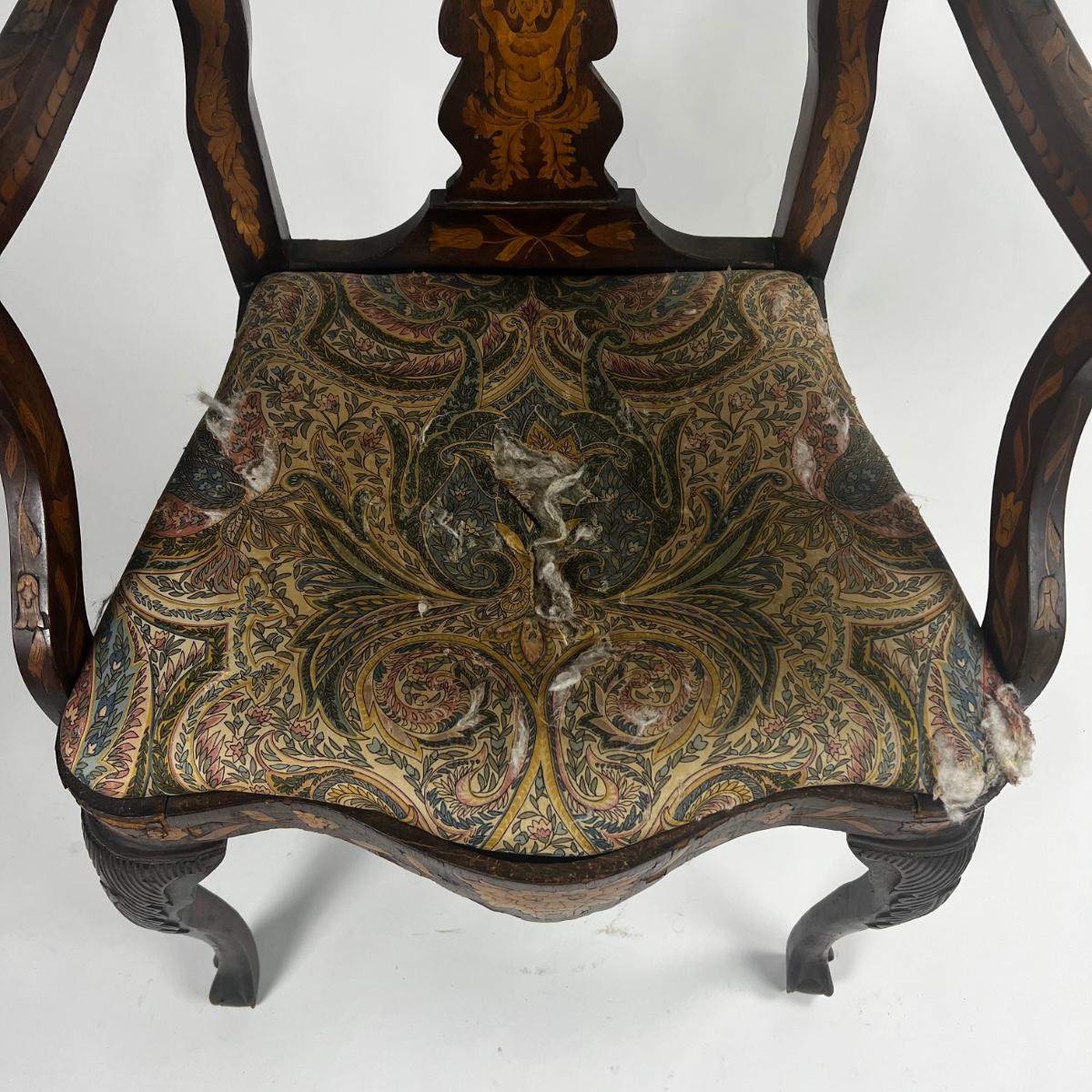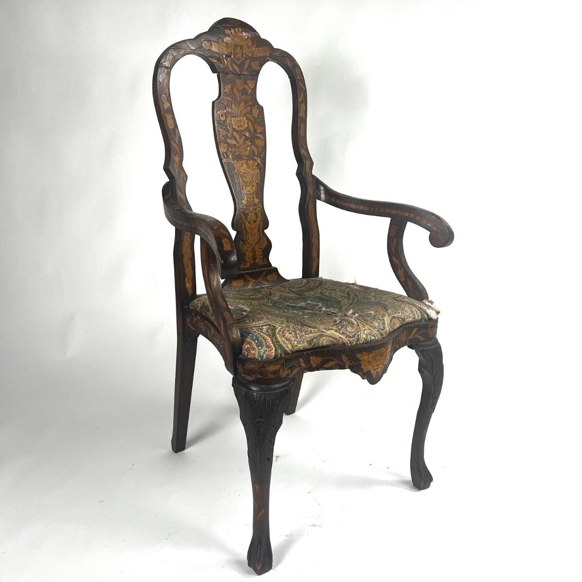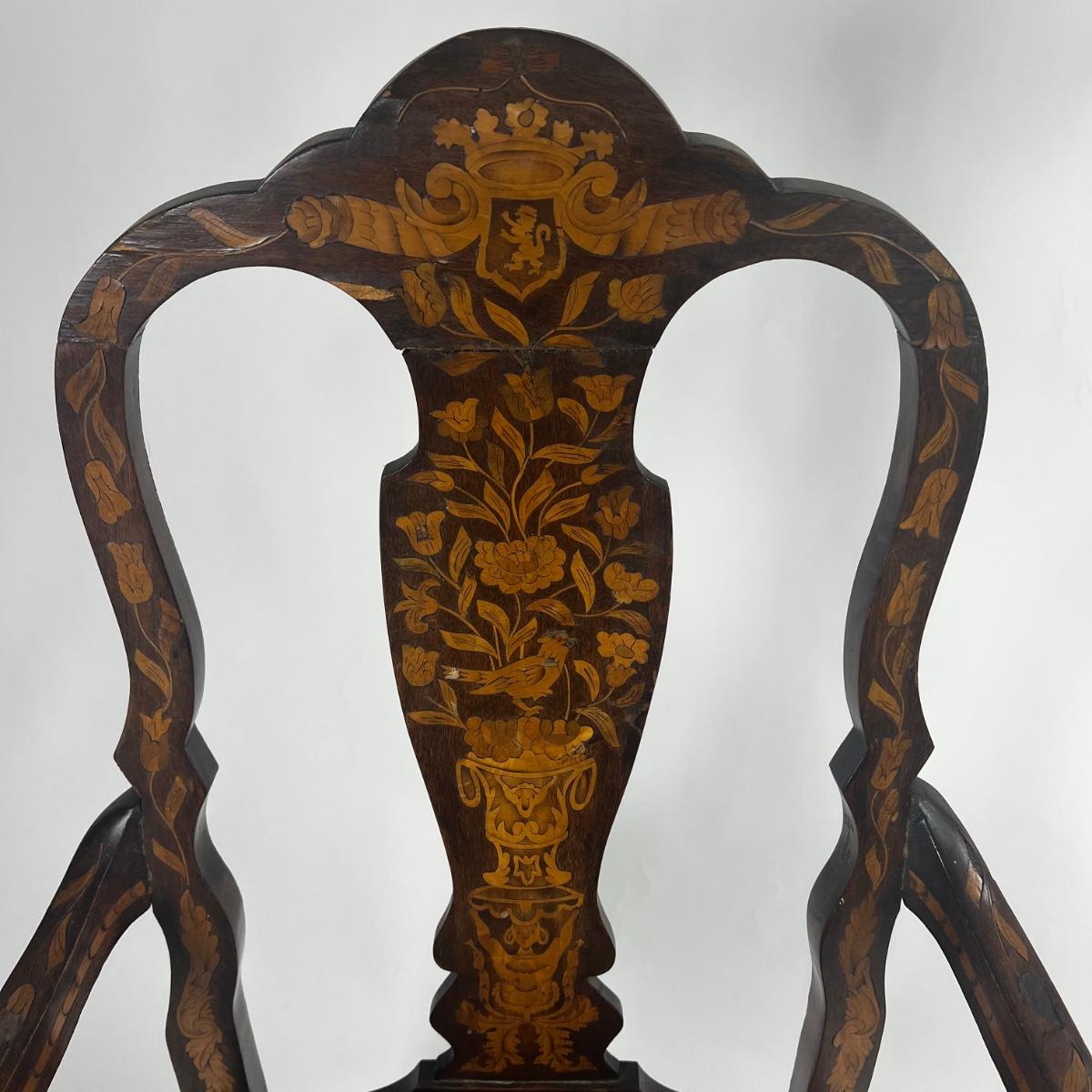 1225 Antique Dutch Marquetry Inlay Arm Chair