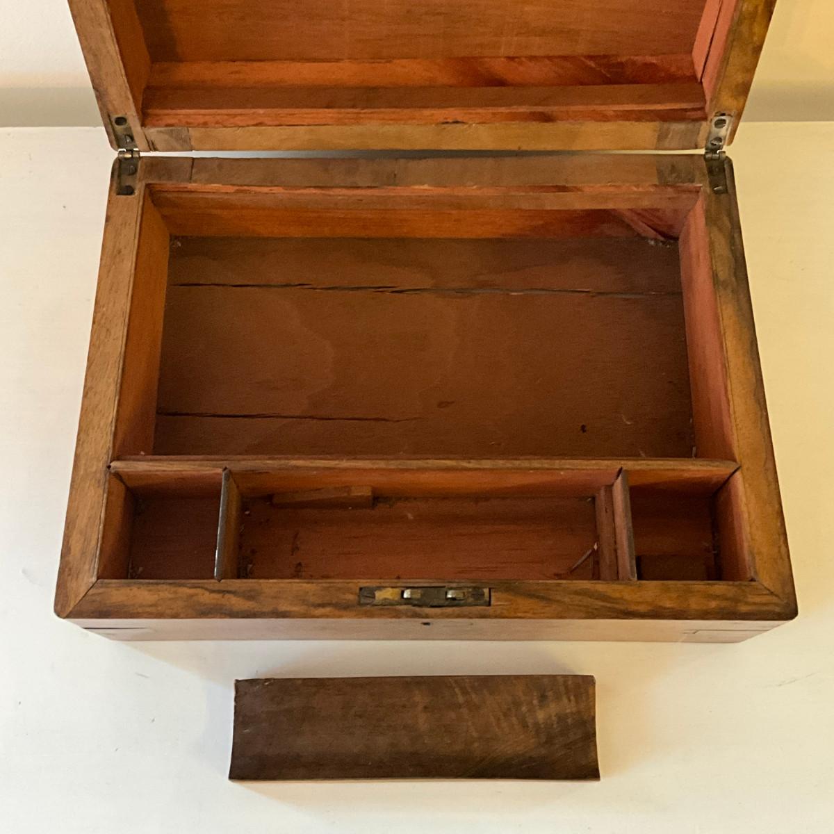 123 Antique Burr Walnut Veneer Brass Hardware English Writing Desk