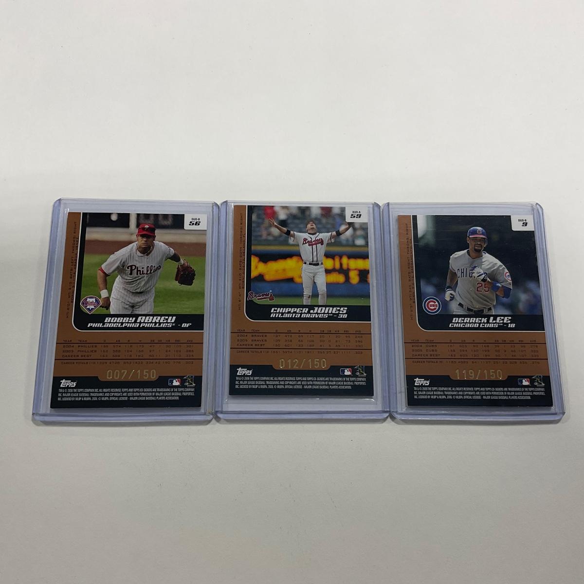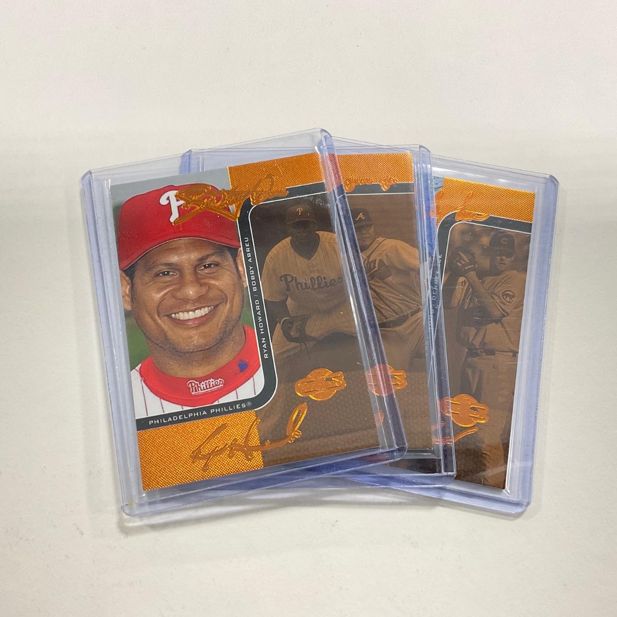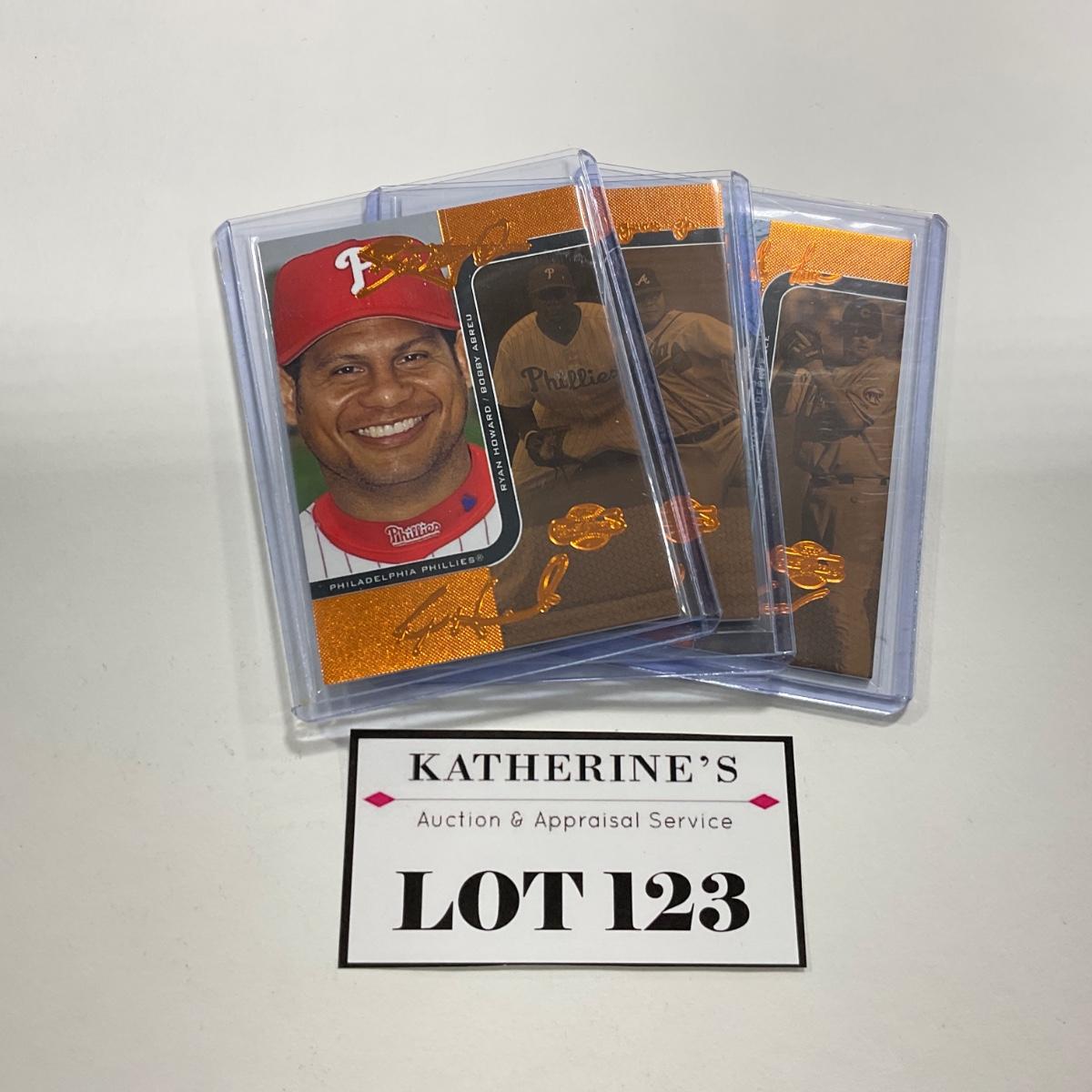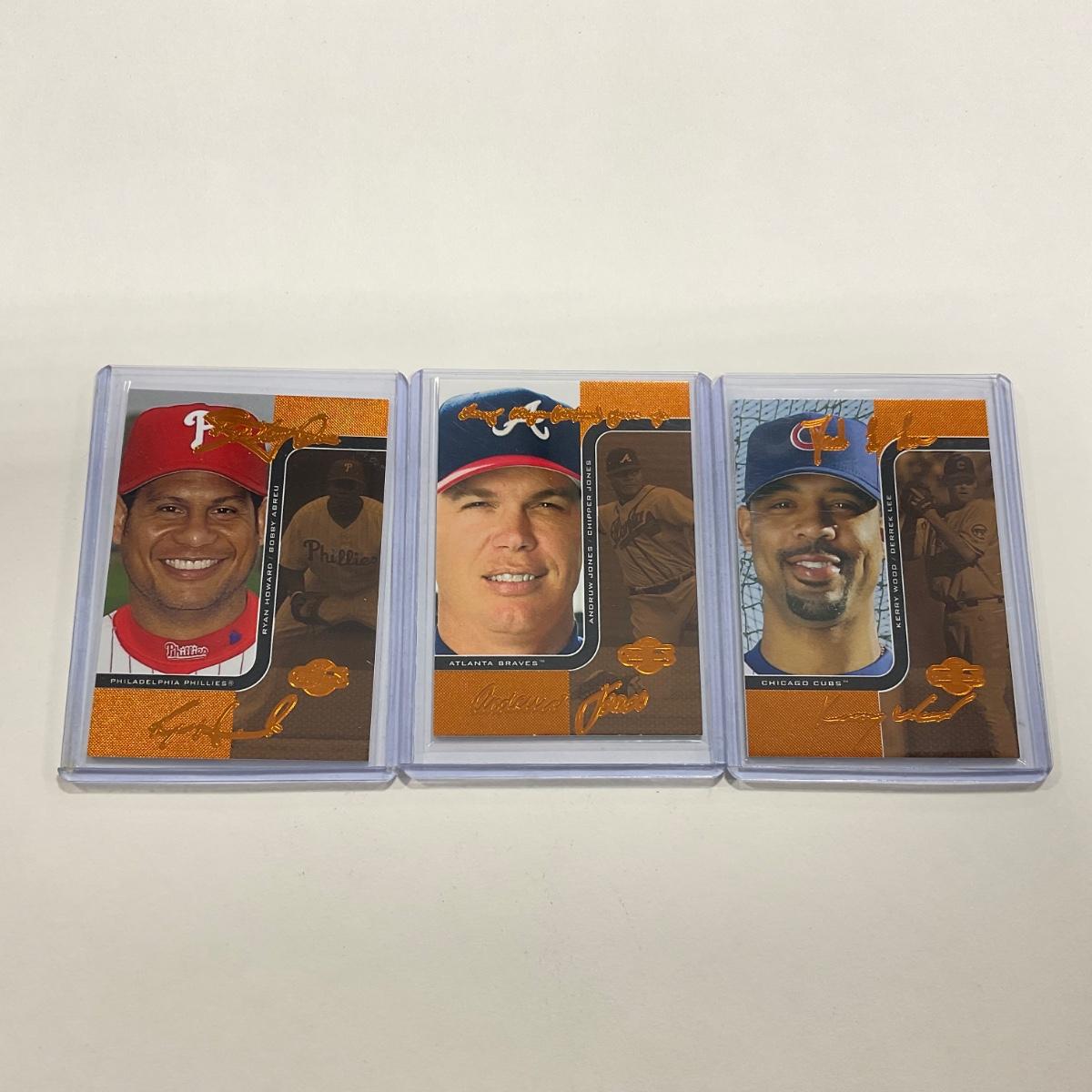 Three cards in this lot include: Wood and Lee from Chicago Cubs 119/150, Jones and Jones from Atlanta Braves 012/150, Howard and Aubrey from Philadelphia Phillies 007/150. Please see photos for details and condition. ::: Shipping is available on this lot. If you require shipping you must let us know at the close of the auction. We will coordinate with you after the item has been won. Shipping fees will include insurance up to or exceeding the value of all items being mailed. If you have any questions regarding this lot please contact the auctioneer either via this website, by direct email or by phone. PICK UP TIMES and other important information can be found in the TERMS and DESCRIPTION of the auction. Please take a look for pertinent information. Thanks!