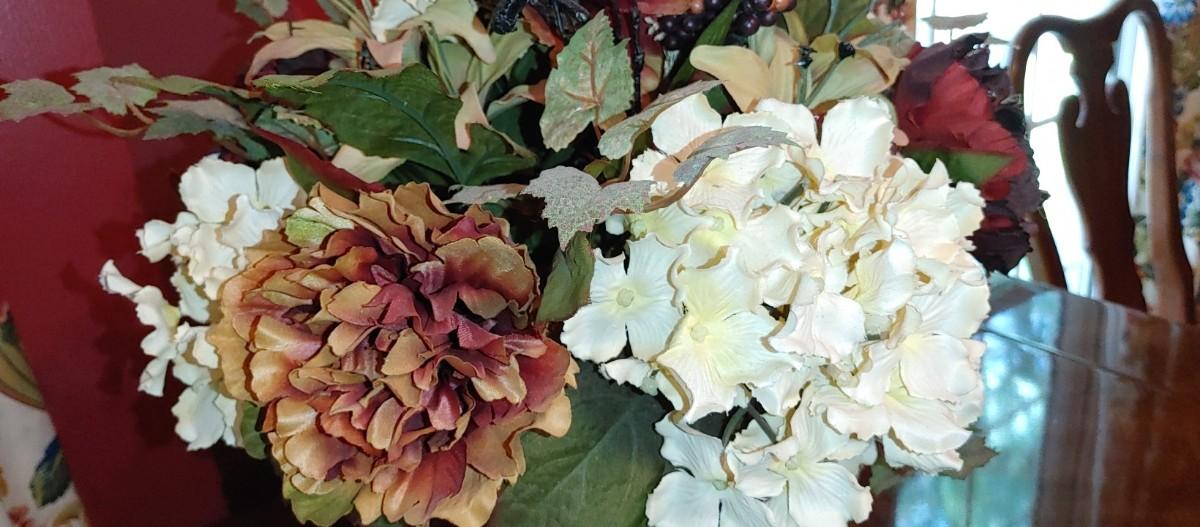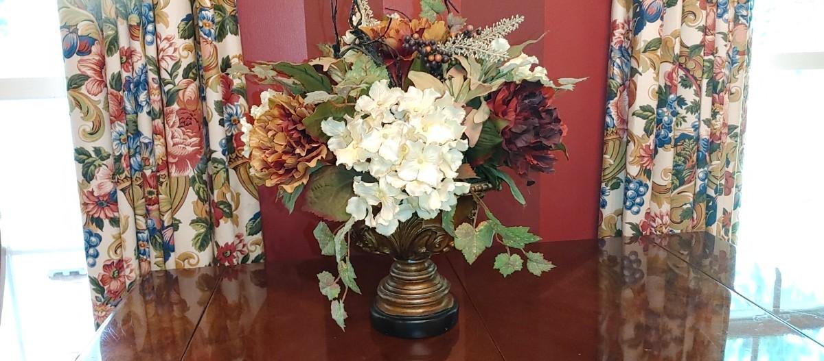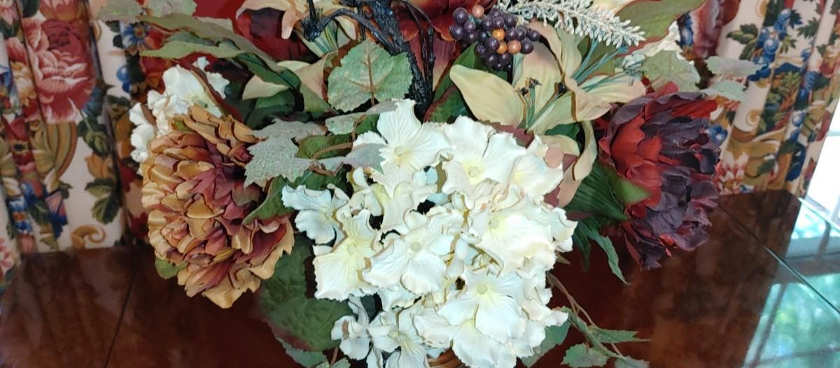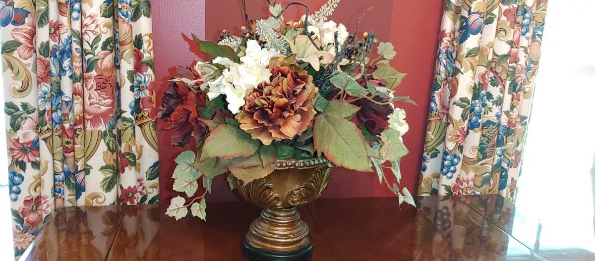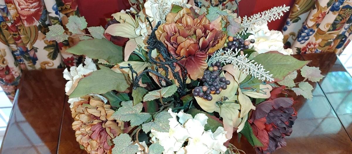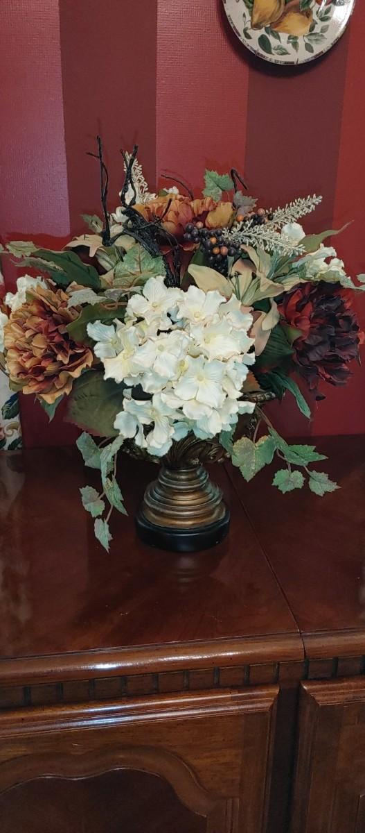 #123 Beautiful Floral Arrangement & Wreath both are high quality & are in great condition.