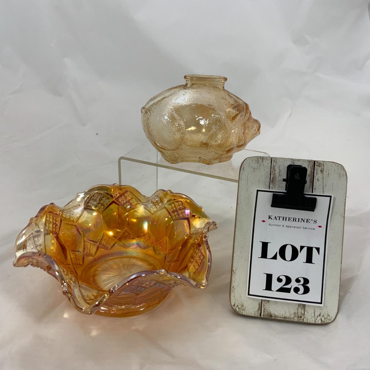 -123- Carnival Glass Pig | Carnival Glass Bon Bon Dish