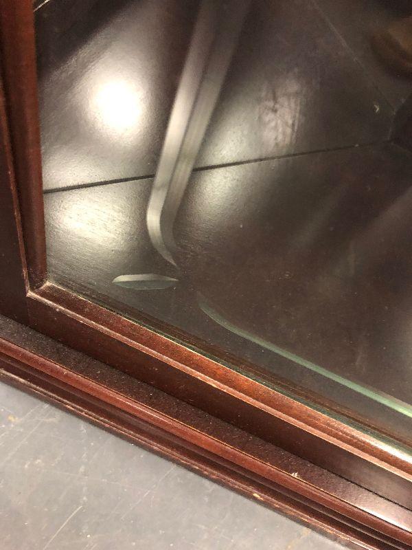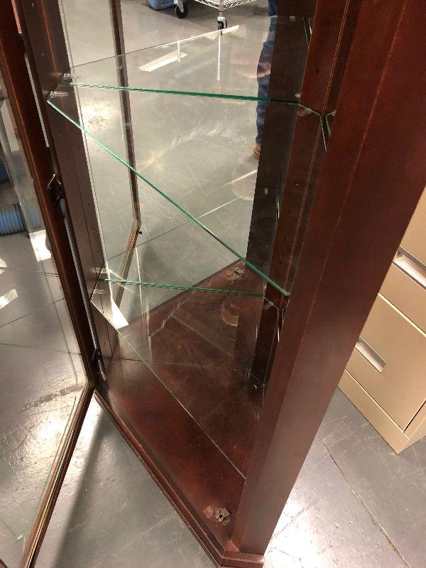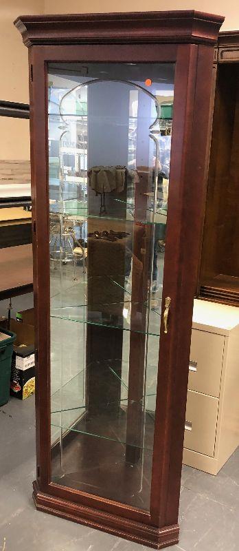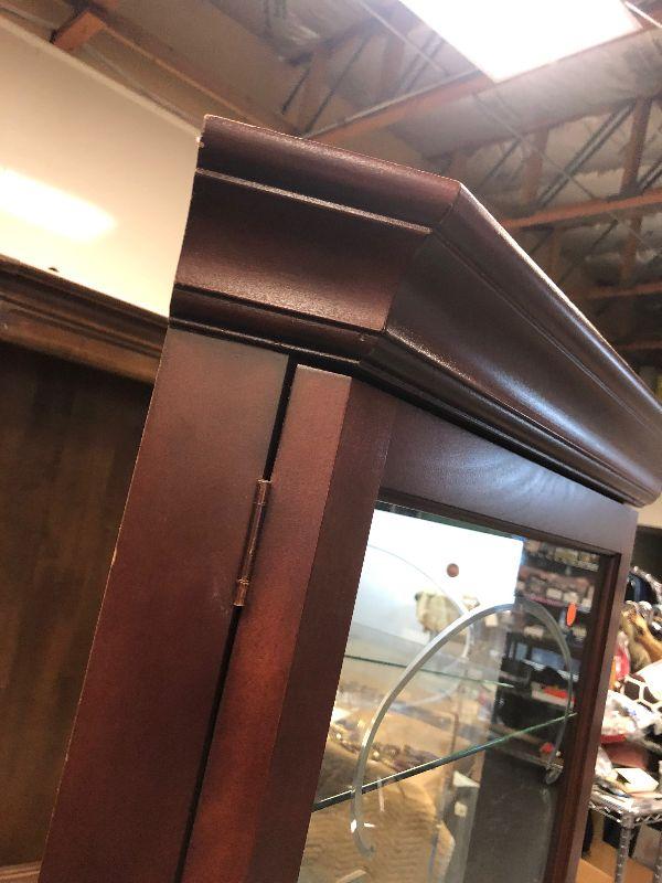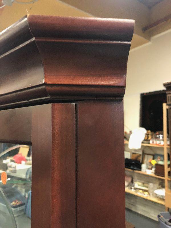 Mahogany with Glass Shelves 16 x 27 x72 Tall with built in Lighting. This is a nice piece of furniture.