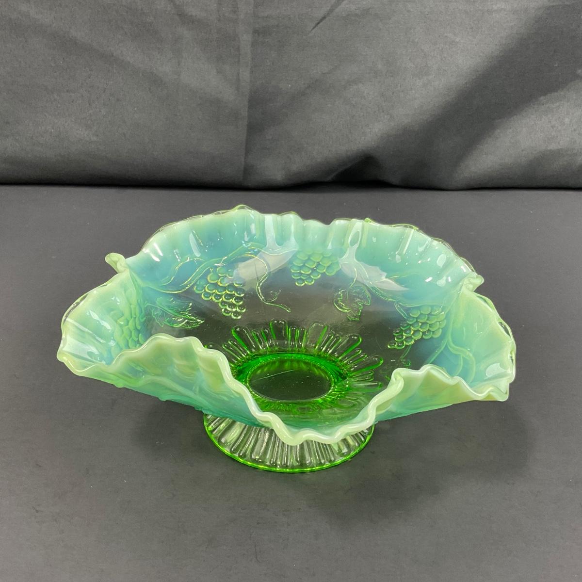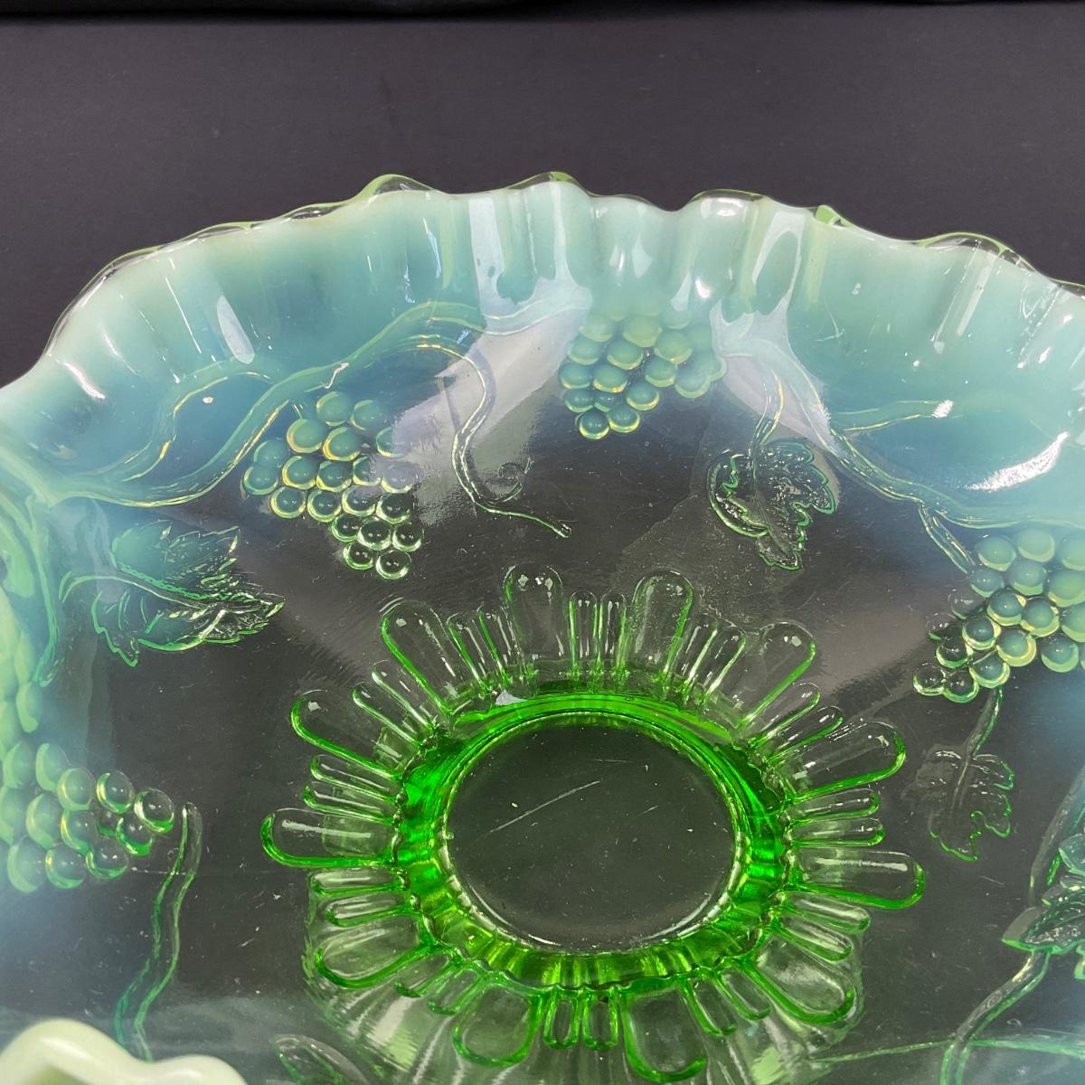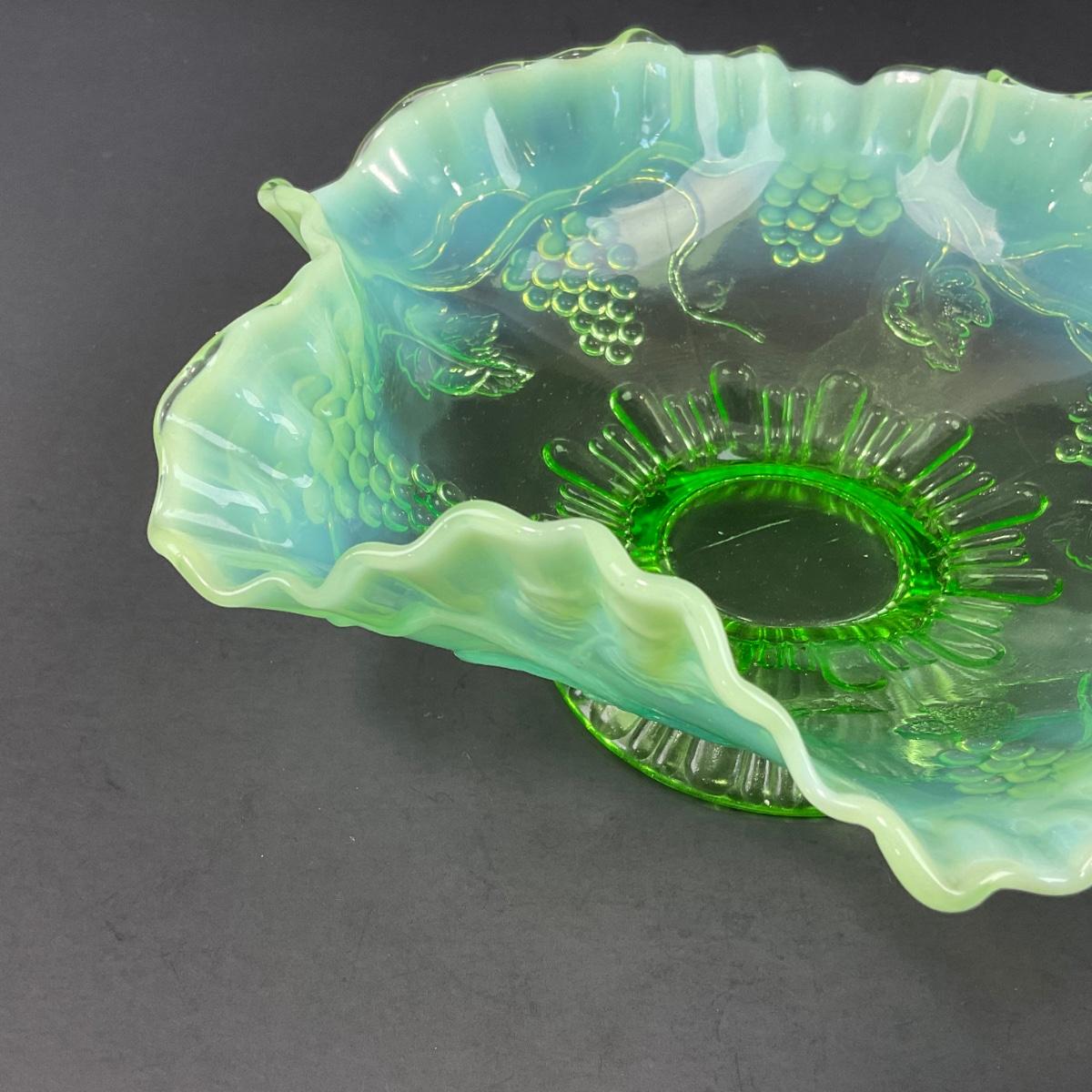 -123- GLASSWARE | Green Opalescent Grape Footed Candy Dish