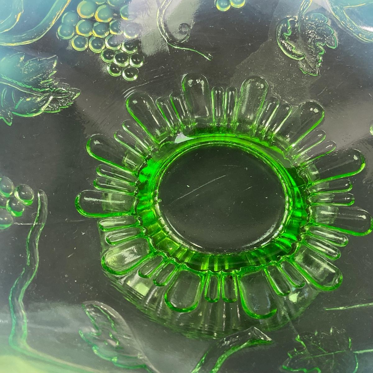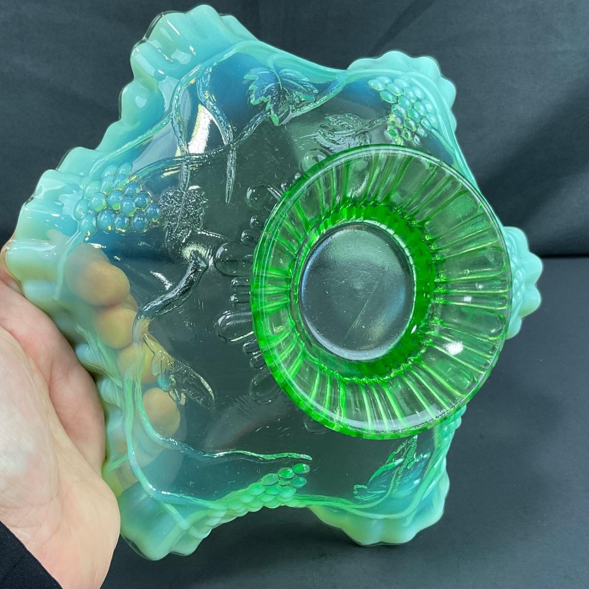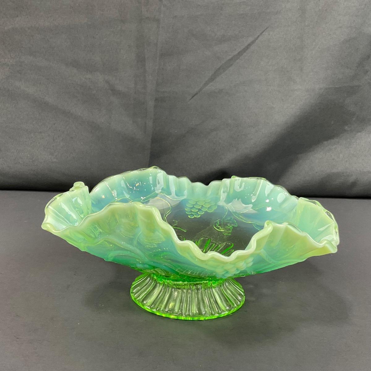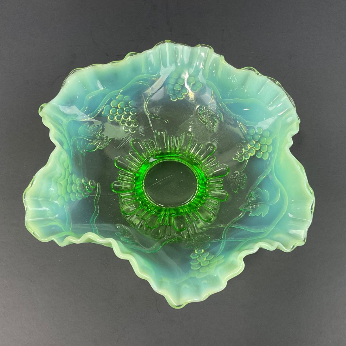 -123- GLASSWARE | Green Opalescent Grape Footed Candy Dish