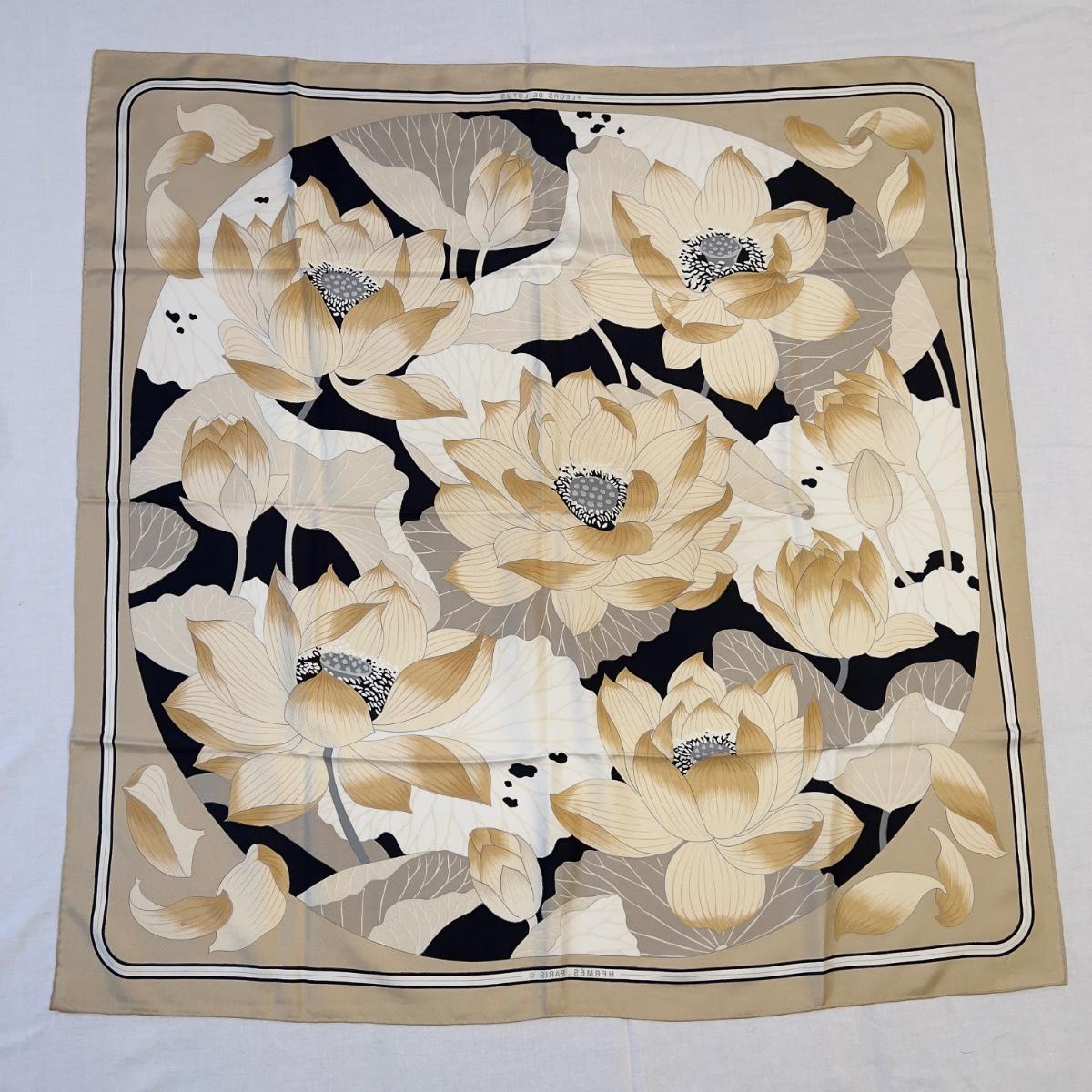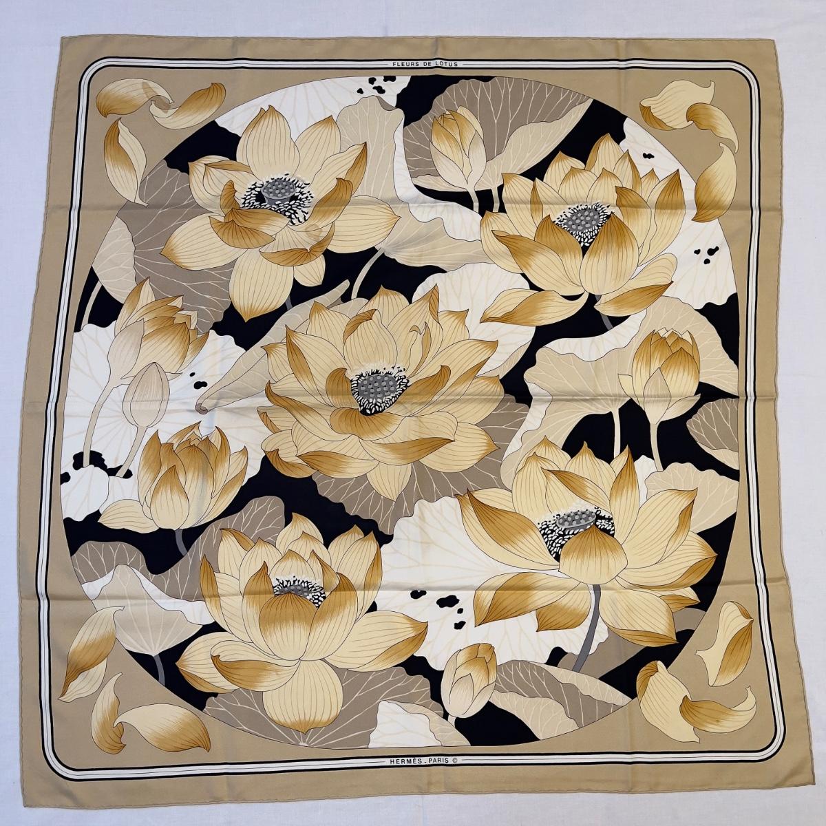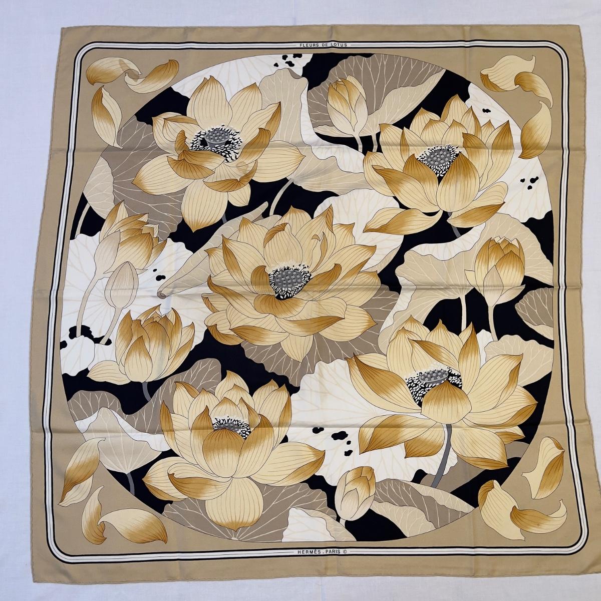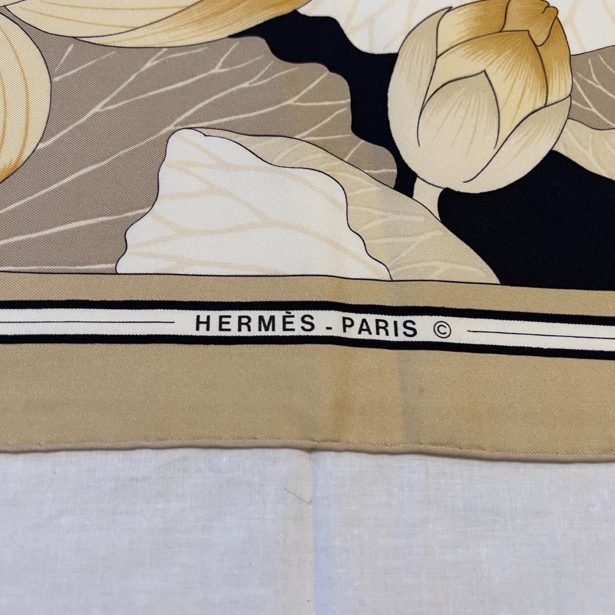 123 Authentic HERMÉS Carre 90 Silk Scarf Fleurs De Lotus by Christiane Vauzelles 1976