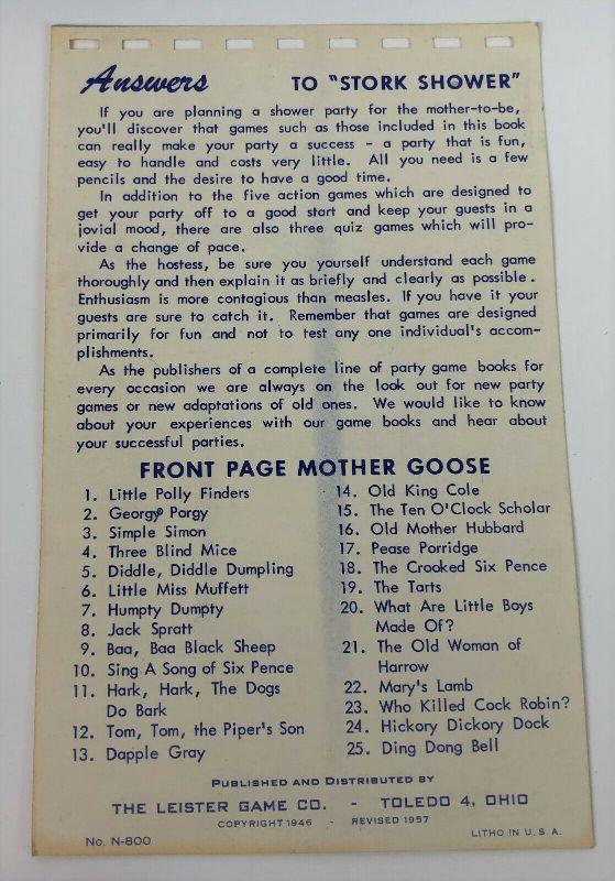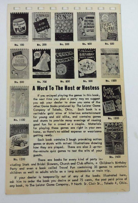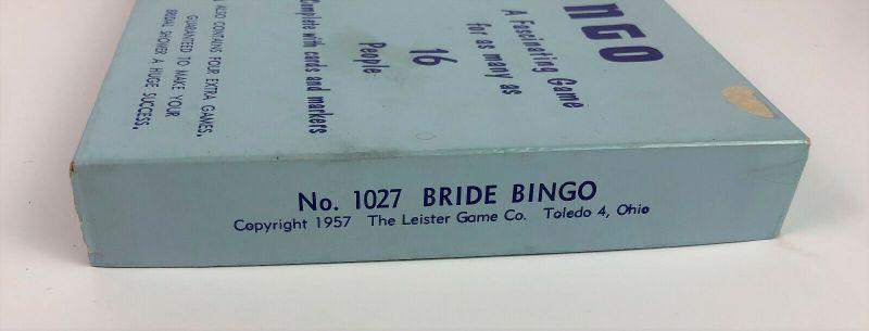 Here is a complete version of BRIDE BINGO copyrighted in 1957 by the Leister Game Company of Toledo, Ohio..No. 1027...also includes some Wedding and Young Mother mimeographed games
