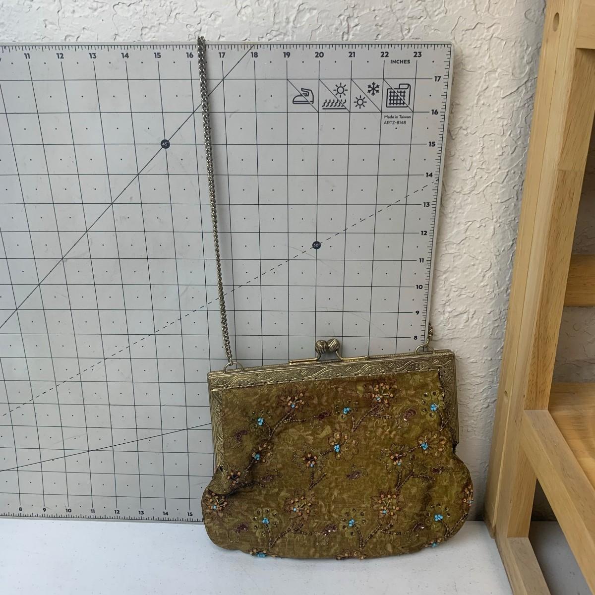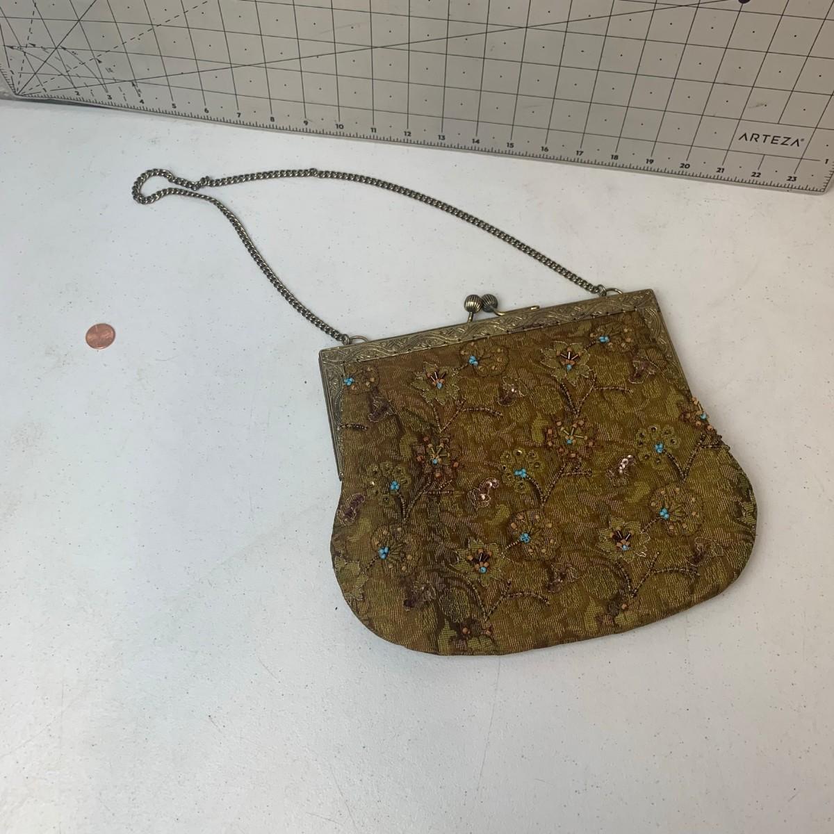 #123 Vintage Christiana Tapestry & Beaded Clutch Purse