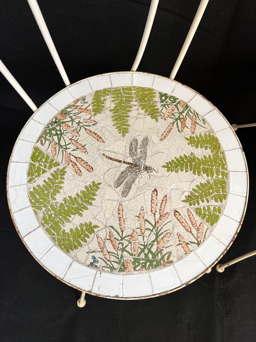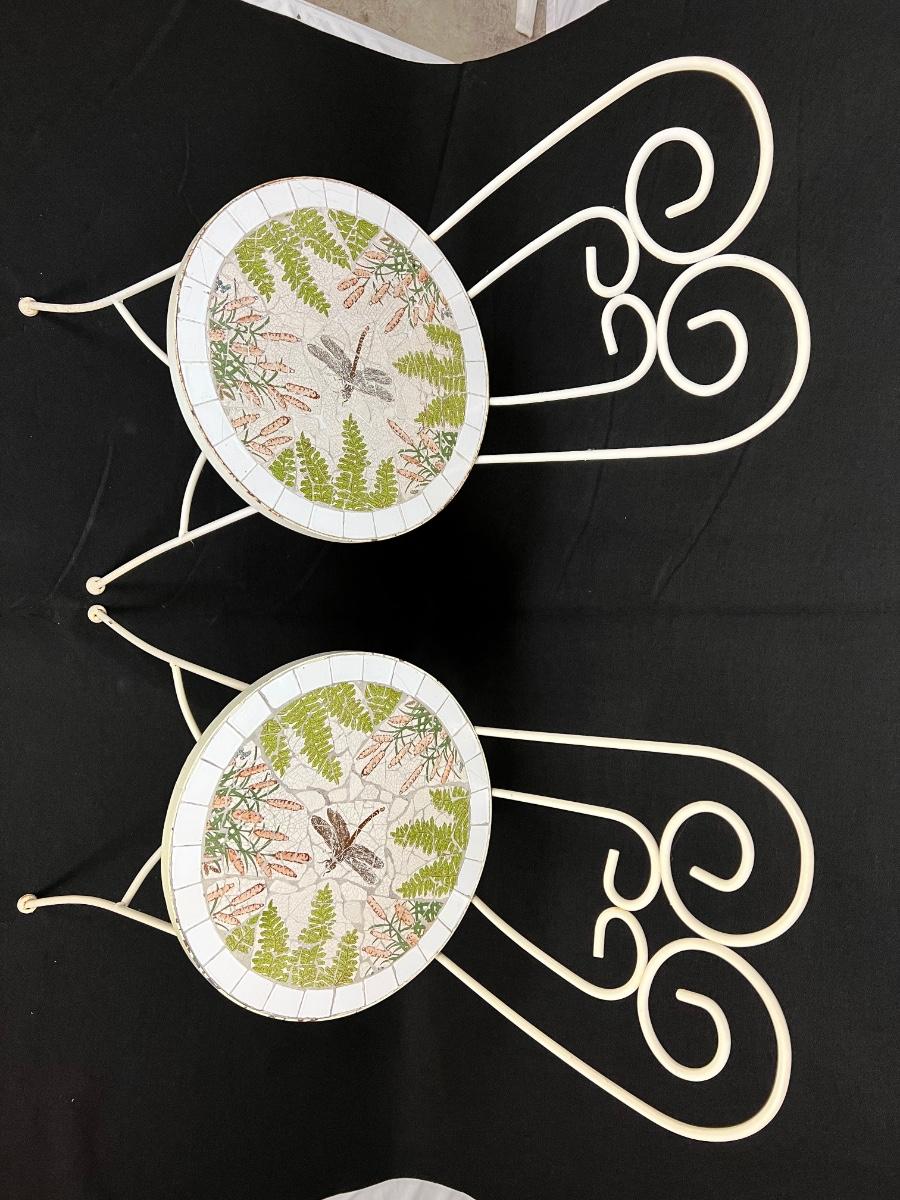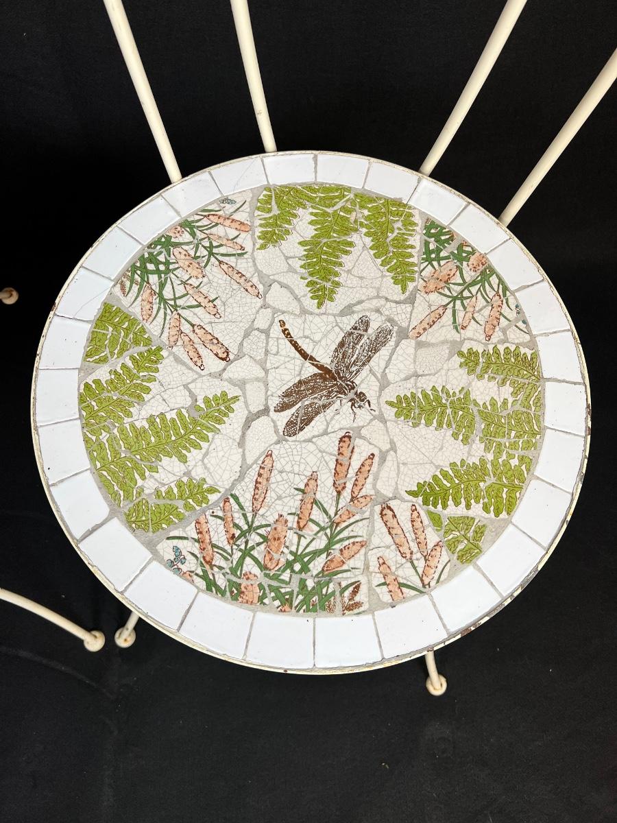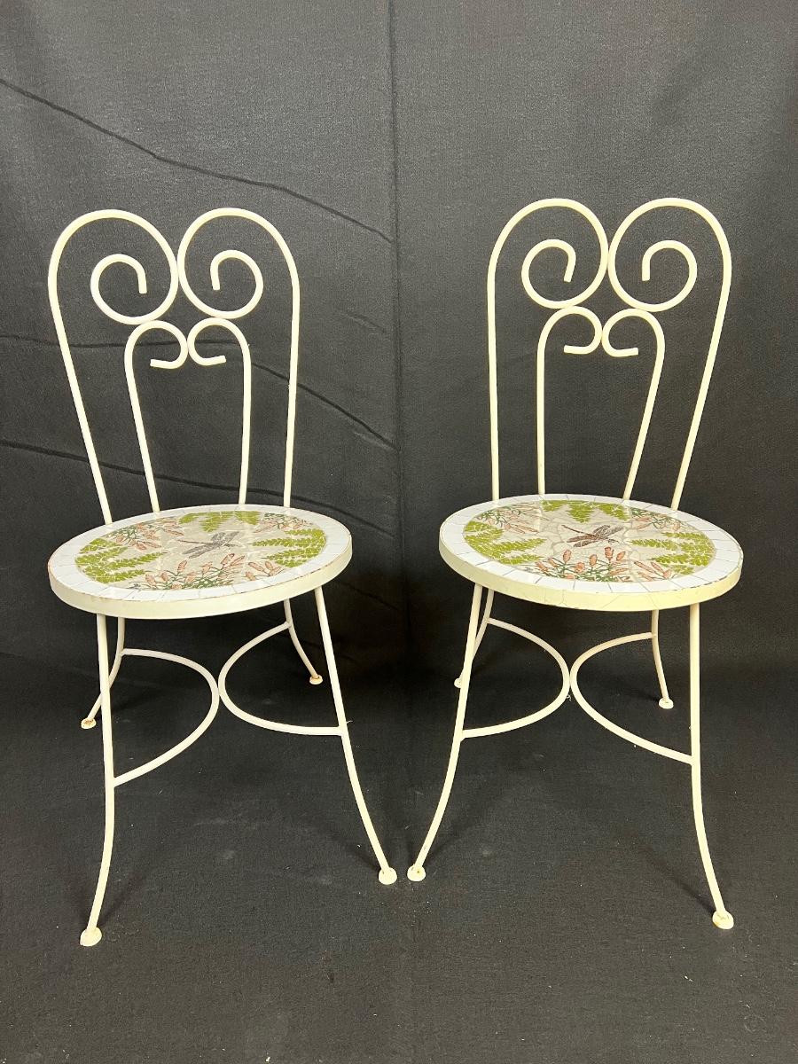 123 Vintage Dragonfly Tiled Seated Wrought Iron Garden Chairs