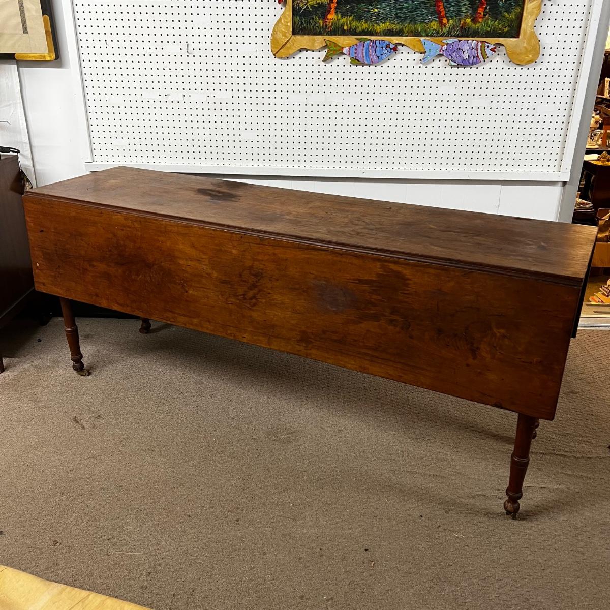 Made from popular or cherry wood. Bun feet with wheels on the bottom.