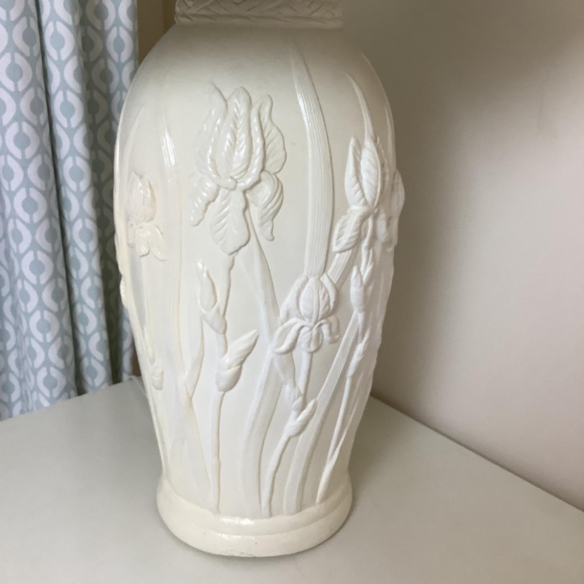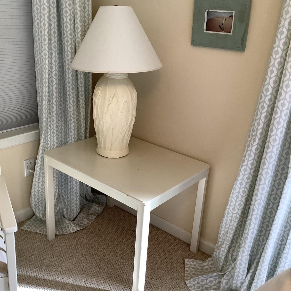 1230 Vintage IKEA White Table with Large White Floral Pottery Lamp