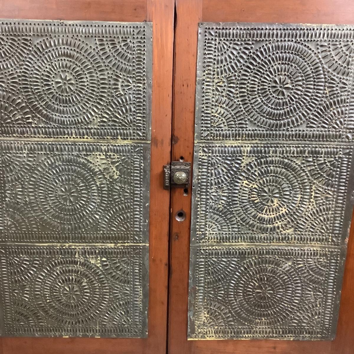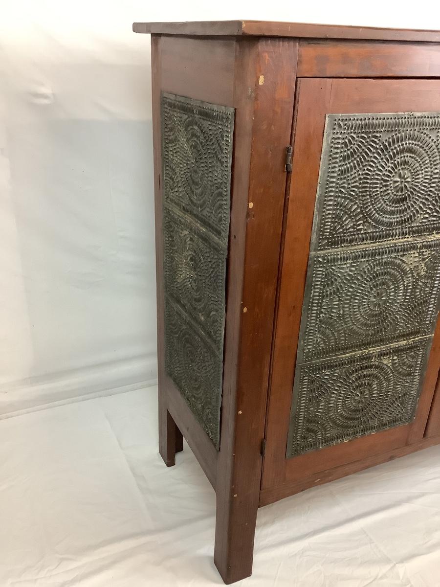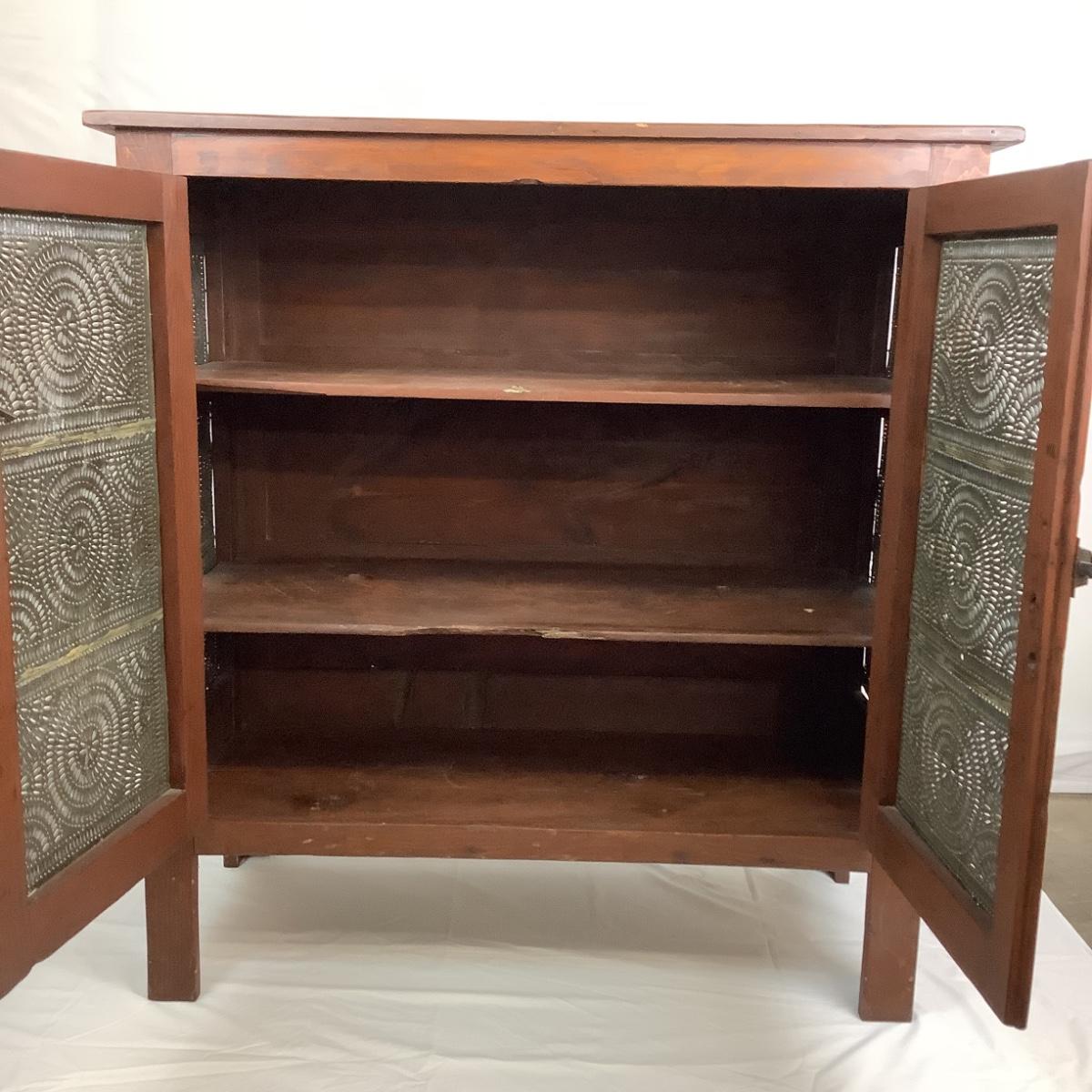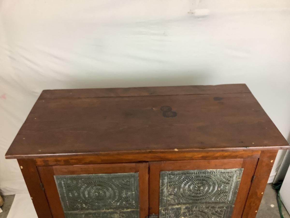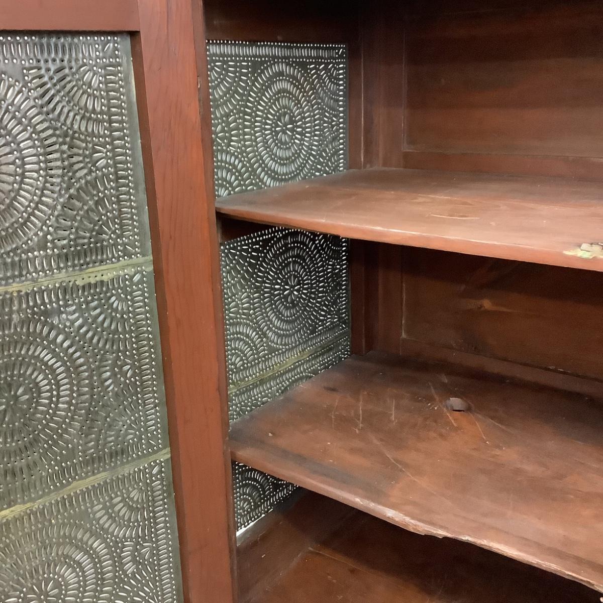 Antique Cherry Stained Wood Pie Safe w/ Punched Tin on 4 sides.