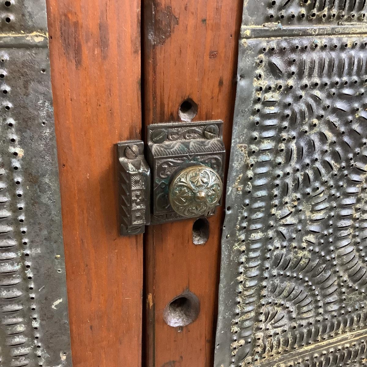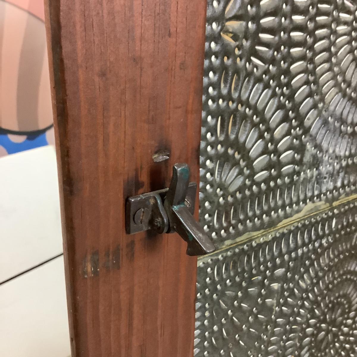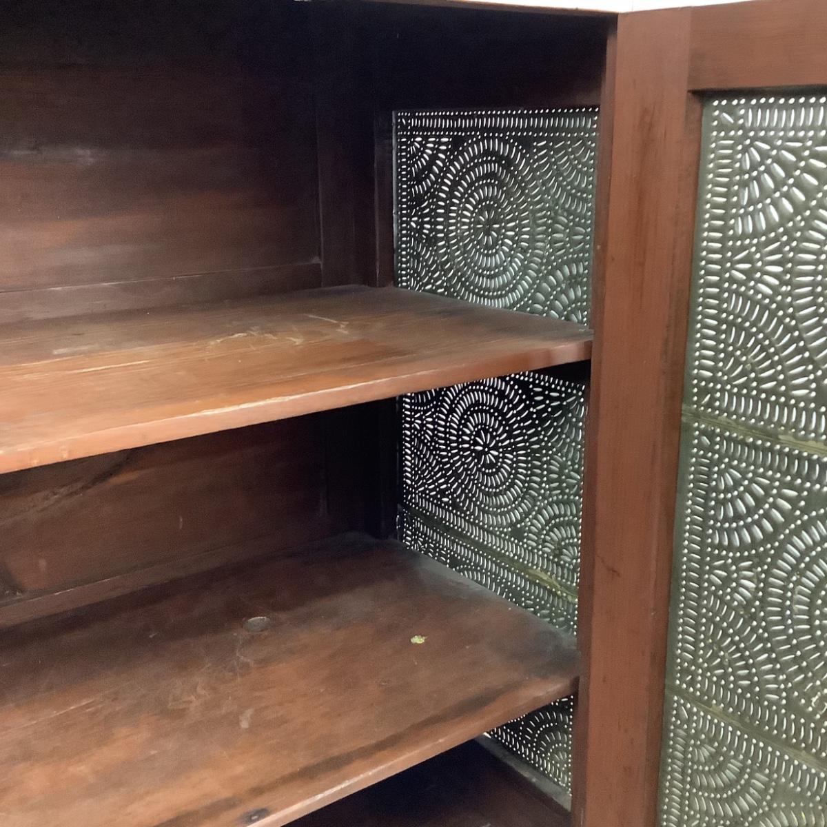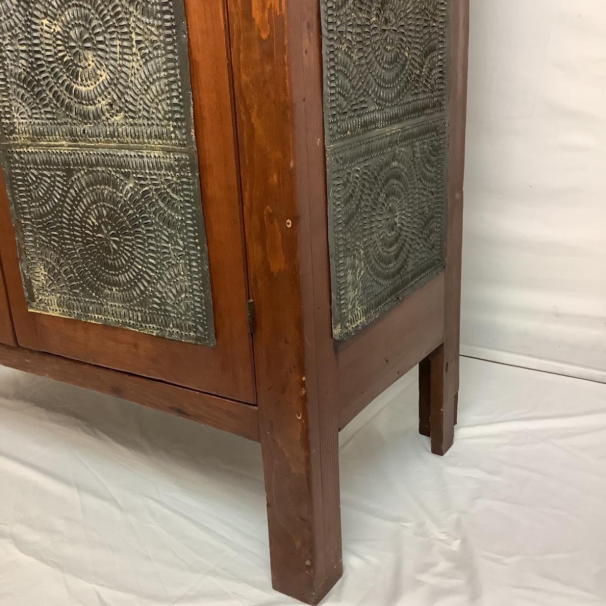 Antique Cherry Stained Wood Pie Safe w/ Punched Tin on 4 sides.
