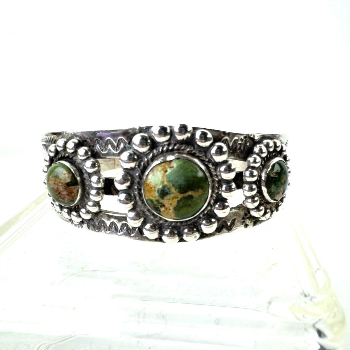 1232 Vintage Navajo Green Turquoise Sterling Cuff Bracelet