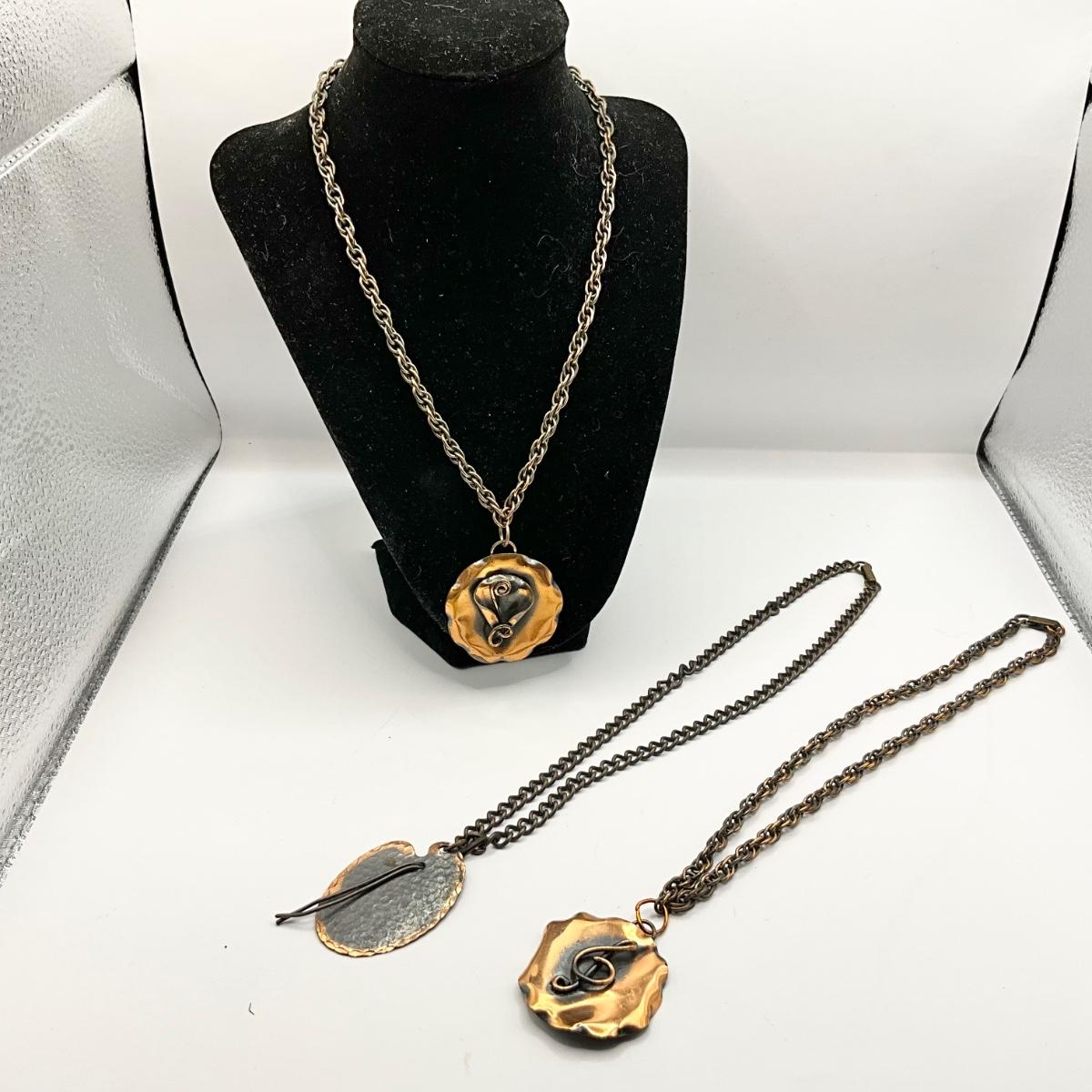 1233 Set of Three Vintage Copper Handmade Necklaces