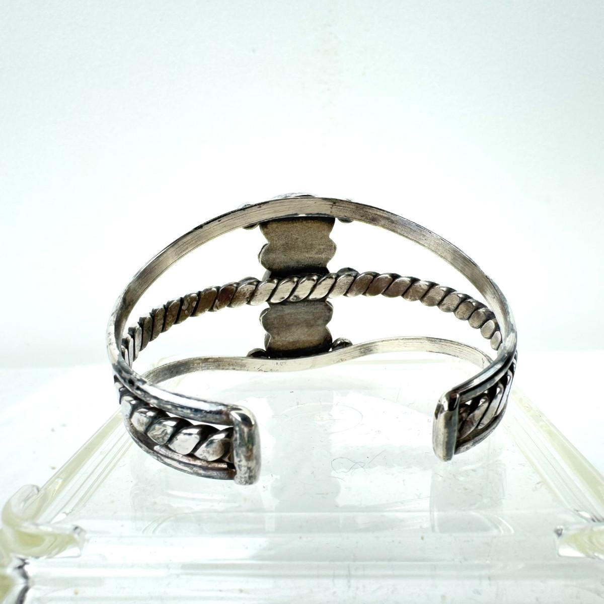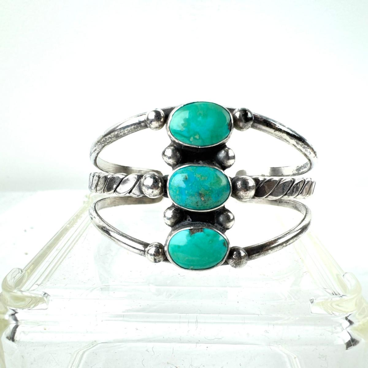 1234 Vintage Three Stone Navajo Carico Lake Turquoise Silver Cuff Bracelet