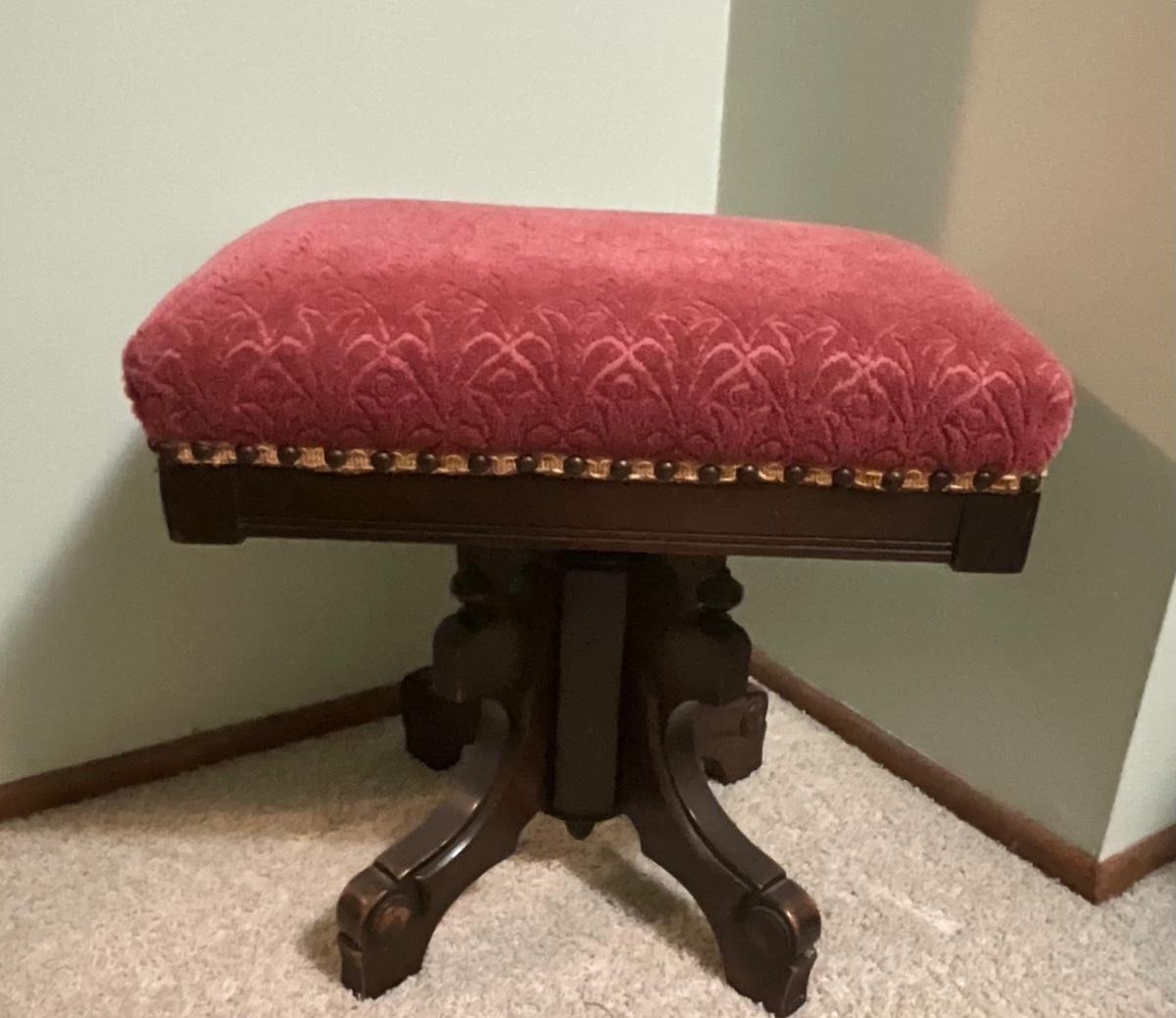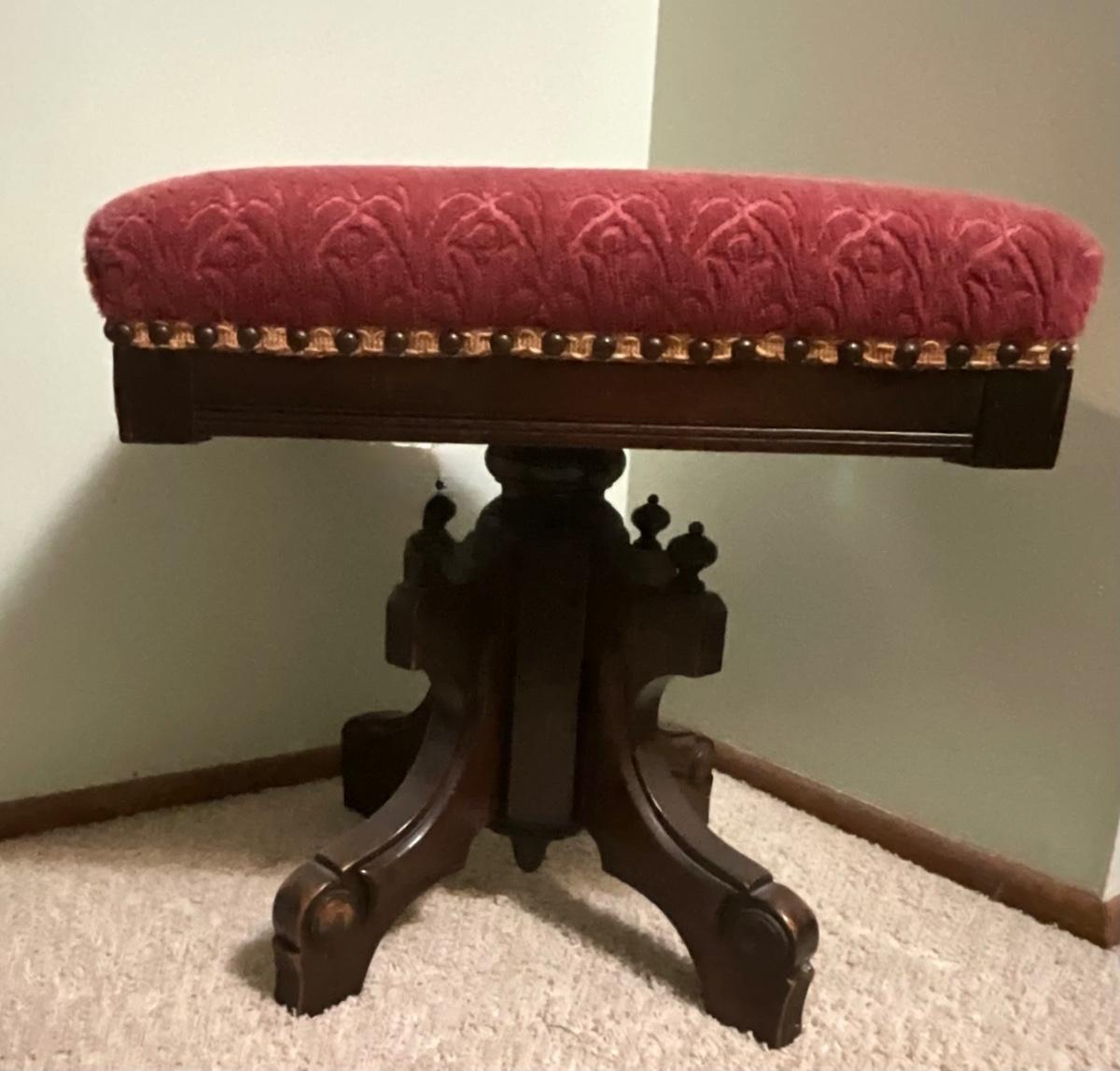 Antique Eastlake Victorian carved walnut ottoman