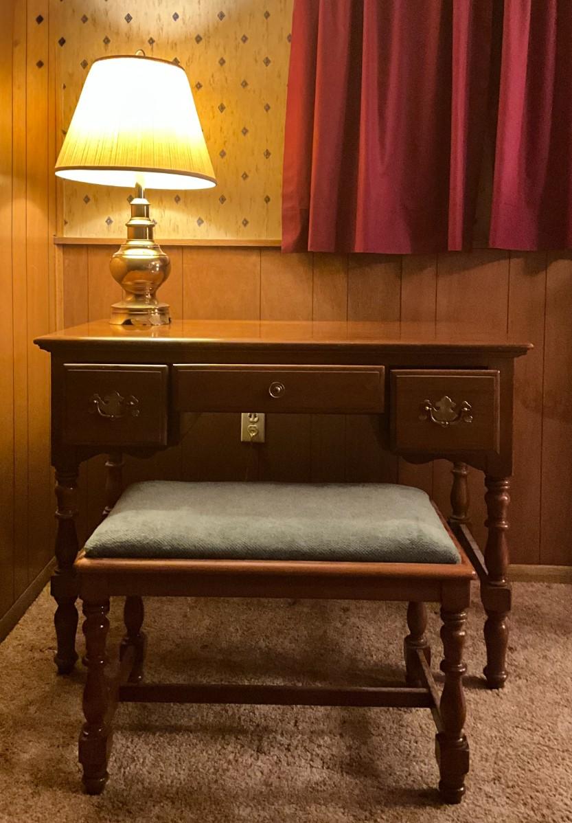 Vintage KLING Dressing Table with bench, solid cherry wood, includes Mirror JL7