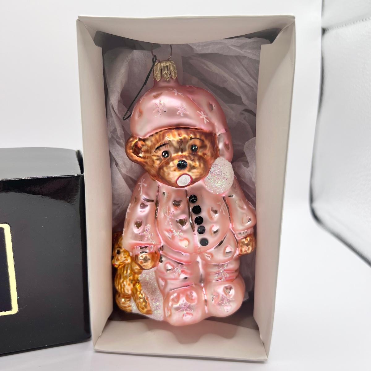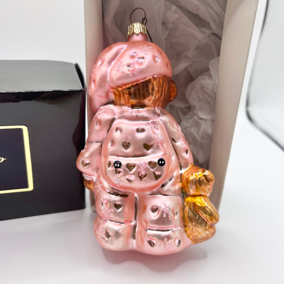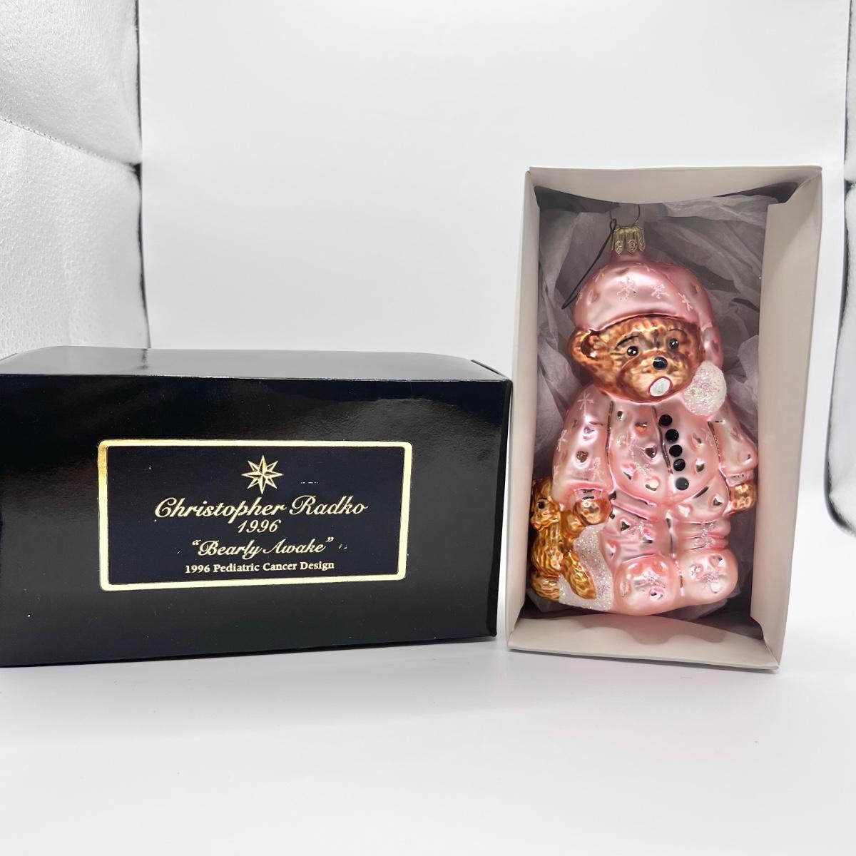 1237 Christopher Radko 1996 Bearly Awake Pediatric Cancer Design Glass Ornament