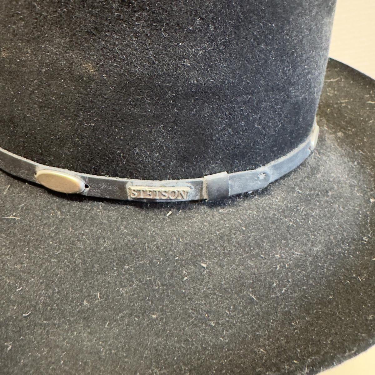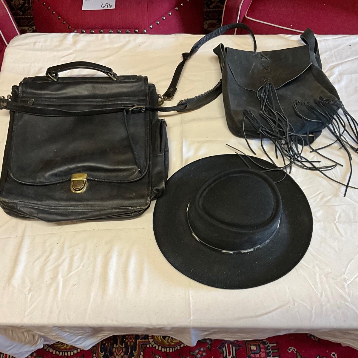 U1238 Vintage Stetson Gun Club Black Hat with Leather Trim and Two Leather Bags