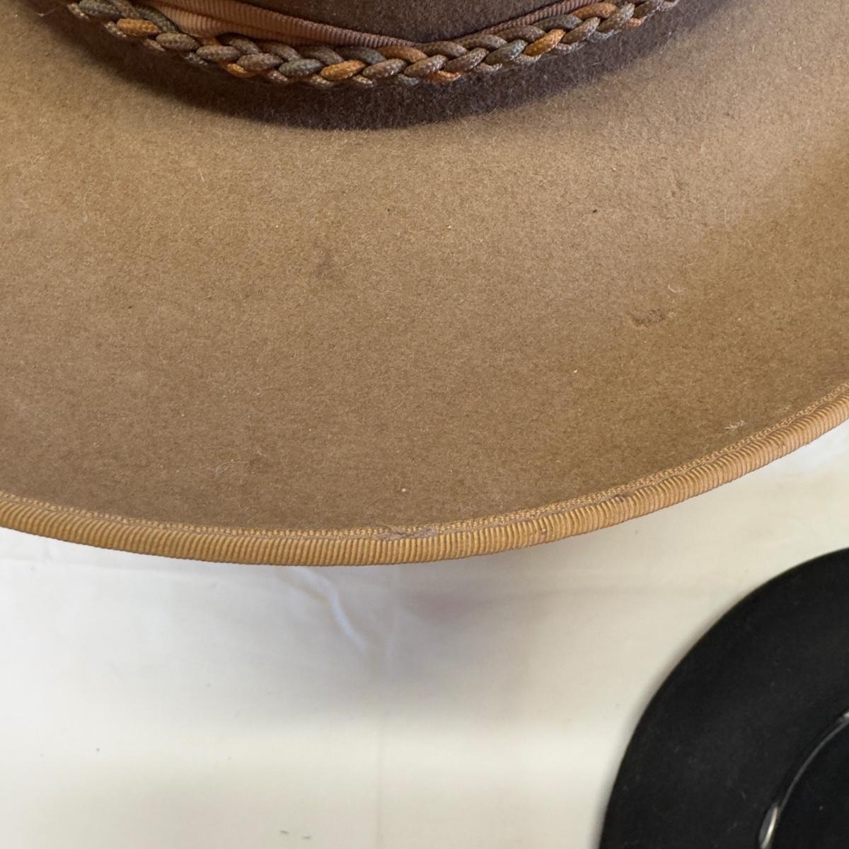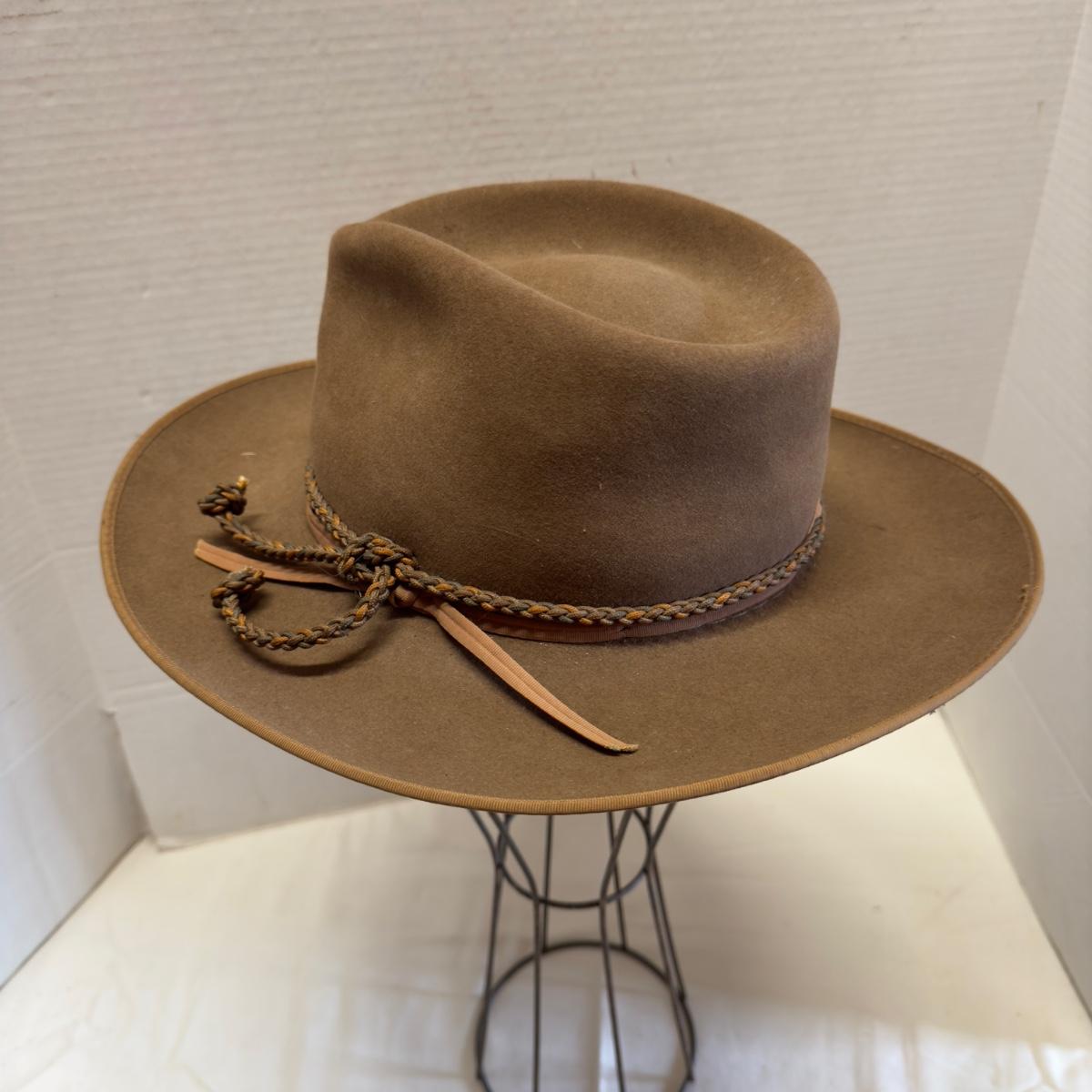 with braided trim , measuring 7.25" and has some moth damage on brim