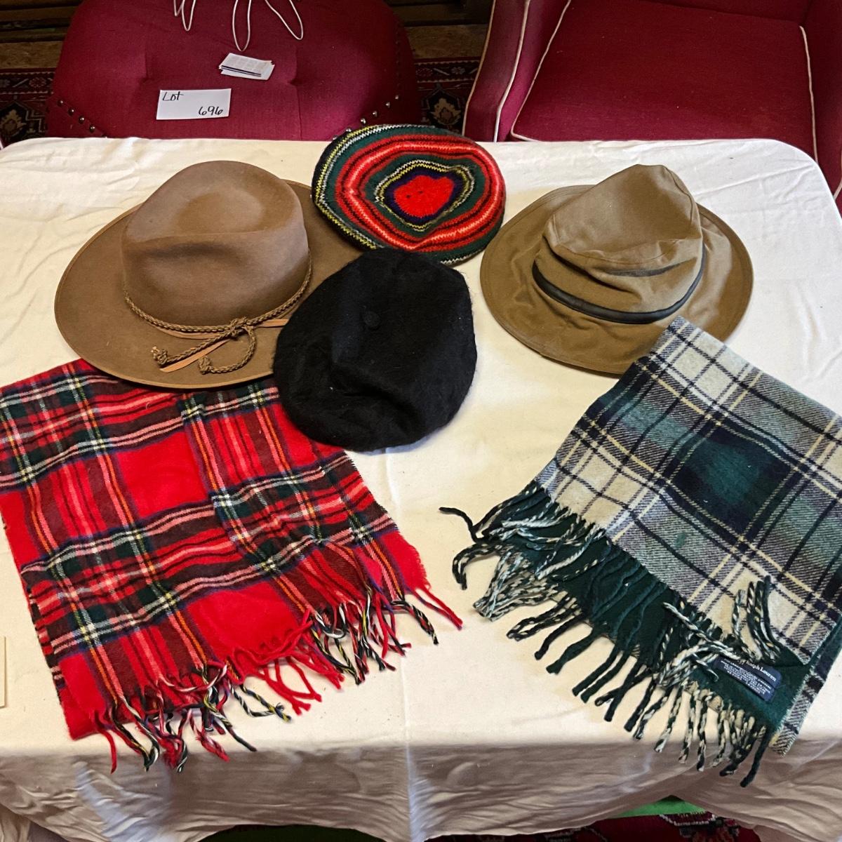 U1239 Vintage Stetson Gun Club Hat, Two Berets, Polo Scarf