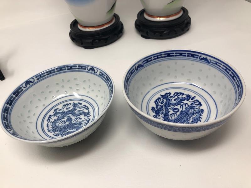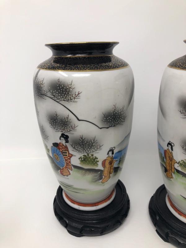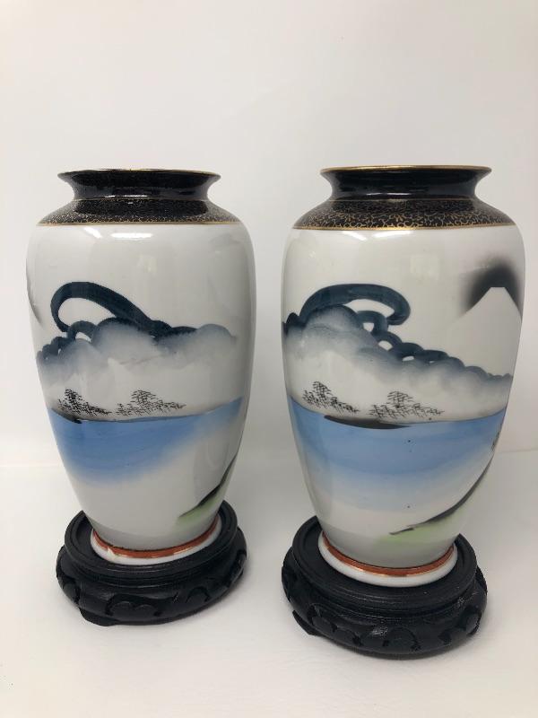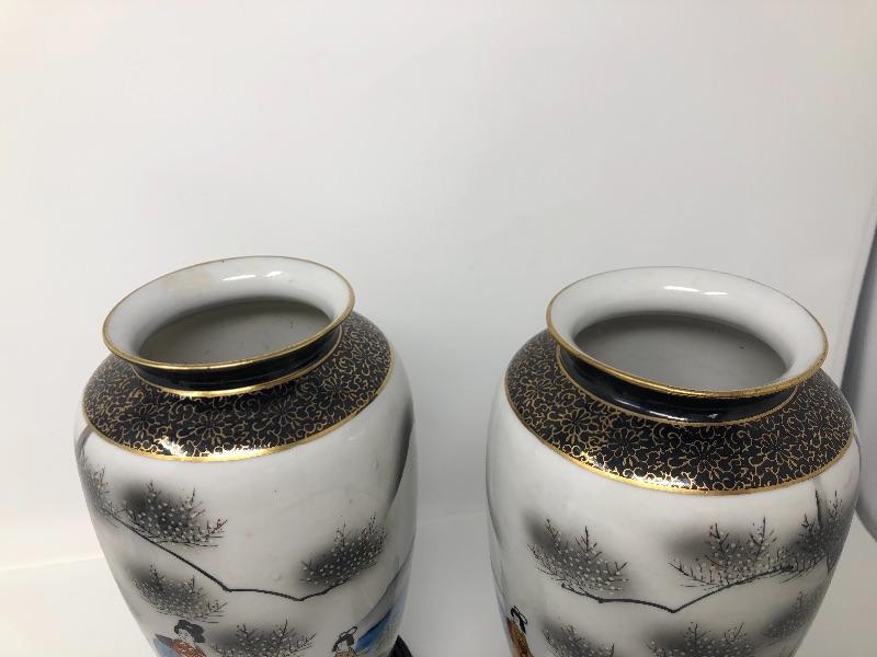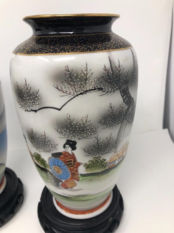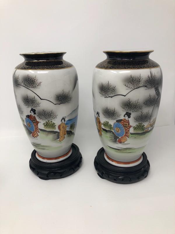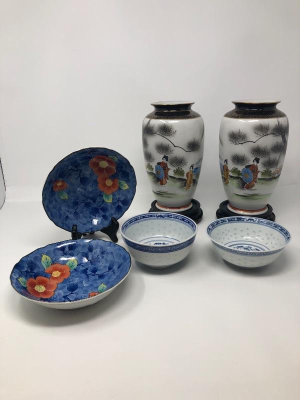 123: Hand Painted Oriental Vases with Oriental Bowls
