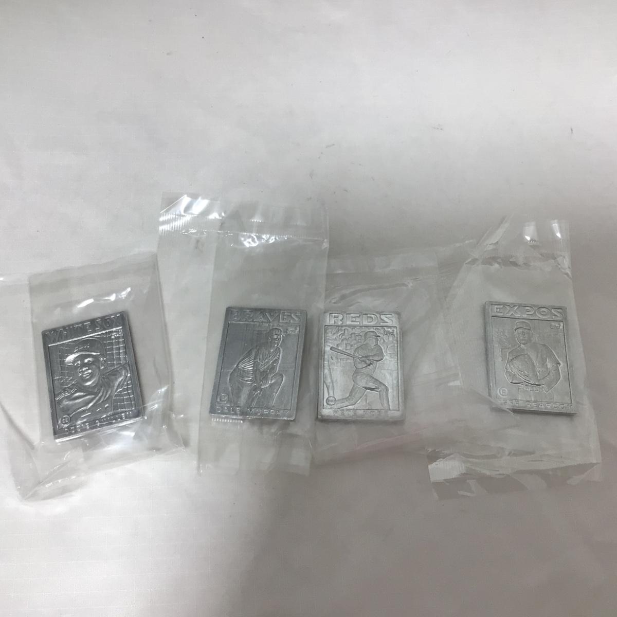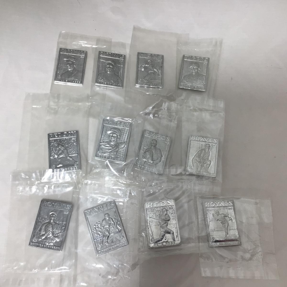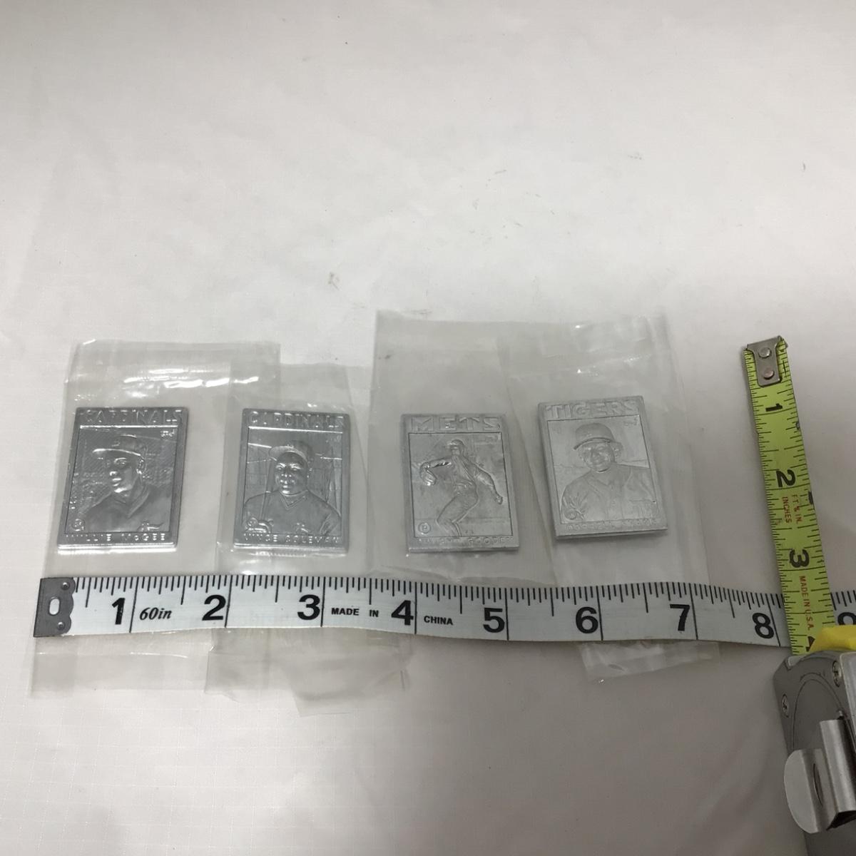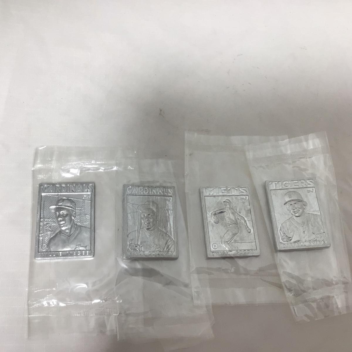 12 Metal TOPPS collector baseball miniature cards with statistics on the beck side. There are different teams and people. Please see photos for details and condition. ::: Shipping is available on this lot. If you require shipping you must let us know at the close of the auction. We will coordinate with you after the item has been won. Shipping fees will include insurance up to or exceeding the value of all items being mailed. If you have any questions regarding this lot please contact the auctioneer either via this website, by direct email or by phone. PICK UP TIMES and other important information can be found in the TERMS and DESCRIPTION of the auction. Please take a look for pertinent information. Thanks!