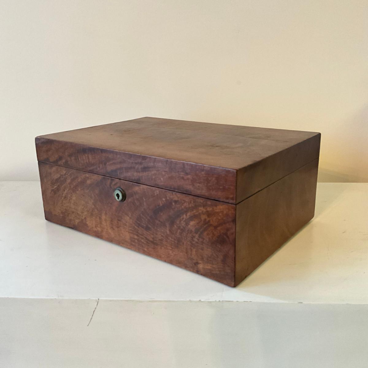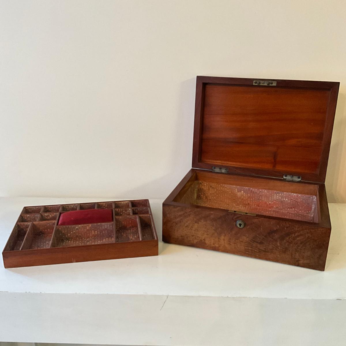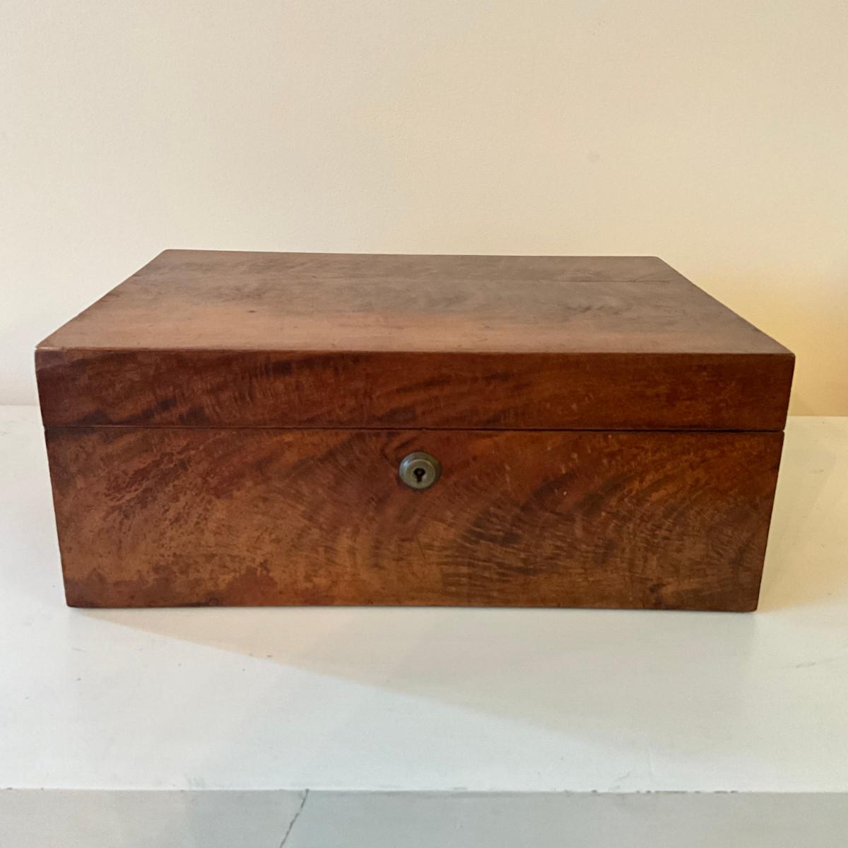 124 Antique Burr Walnut Veneer Jewelry/Sewing Box