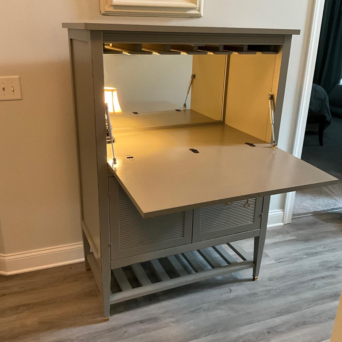 Upper cabinet has working key lock