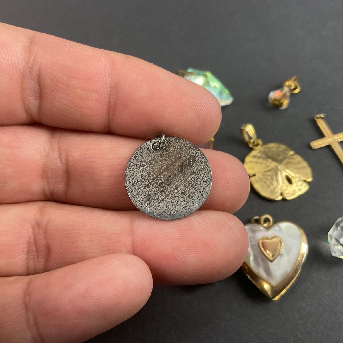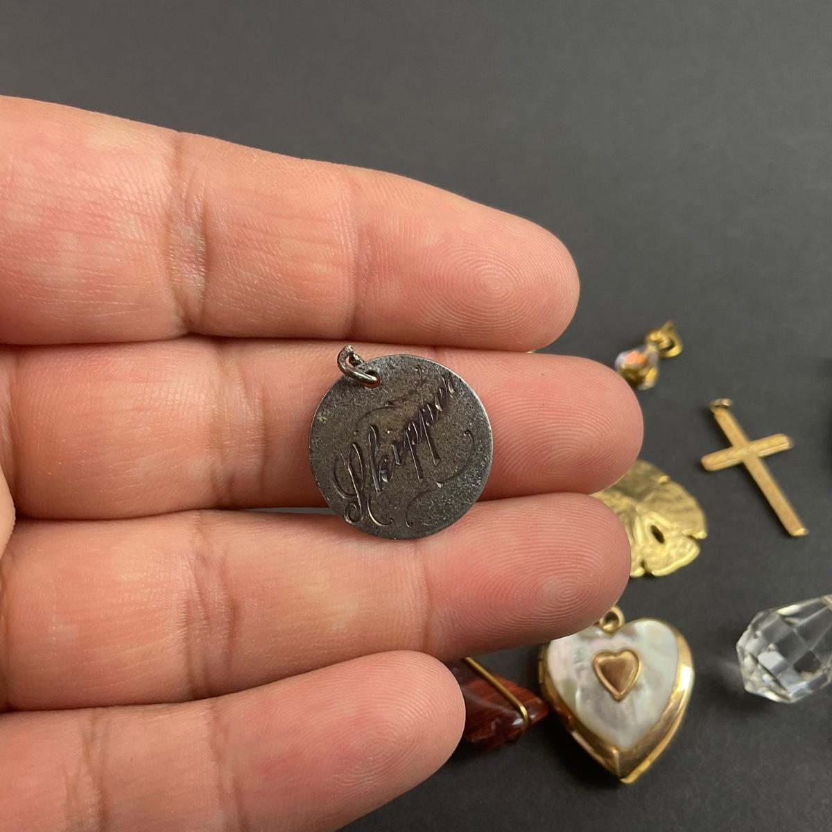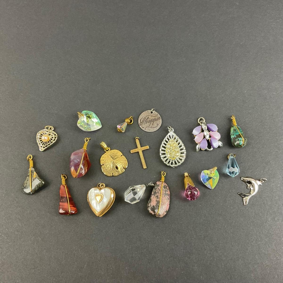 19 assorted miscellaneous pendants/charms. Please see photos for details and condition. Any condition statement is given as a courtesy to a client, is an opinion, and should not be treated as a statement of fact. Reference to condition written, oral or within a condition report shall not be regarded as a full account of condition and may not include all defects, alterations, or restorations. Absence of a condition report does not imply a lot is flawless or lacking imperfections or damage. Katherine’s Auction & Appraisal Service shall have no responsibility for any error or omission. Returns shall not be accepted on the basis of condition. ::: Shipping is available on this lot. If you require shipping you must let us know at the close of the auction. We will coordinate with you after the item has been won. Shipping fees will include insurance up to or exceeding the value of all items being mailed. If you have any questions regarding this lot please contact the auctioneer either via this website, by direct email or by phone. PICK UP TIMES and other important information can be found in the TERMS and DESCRIPTION of the auction. Please take a look for pertinent information. Thanks!