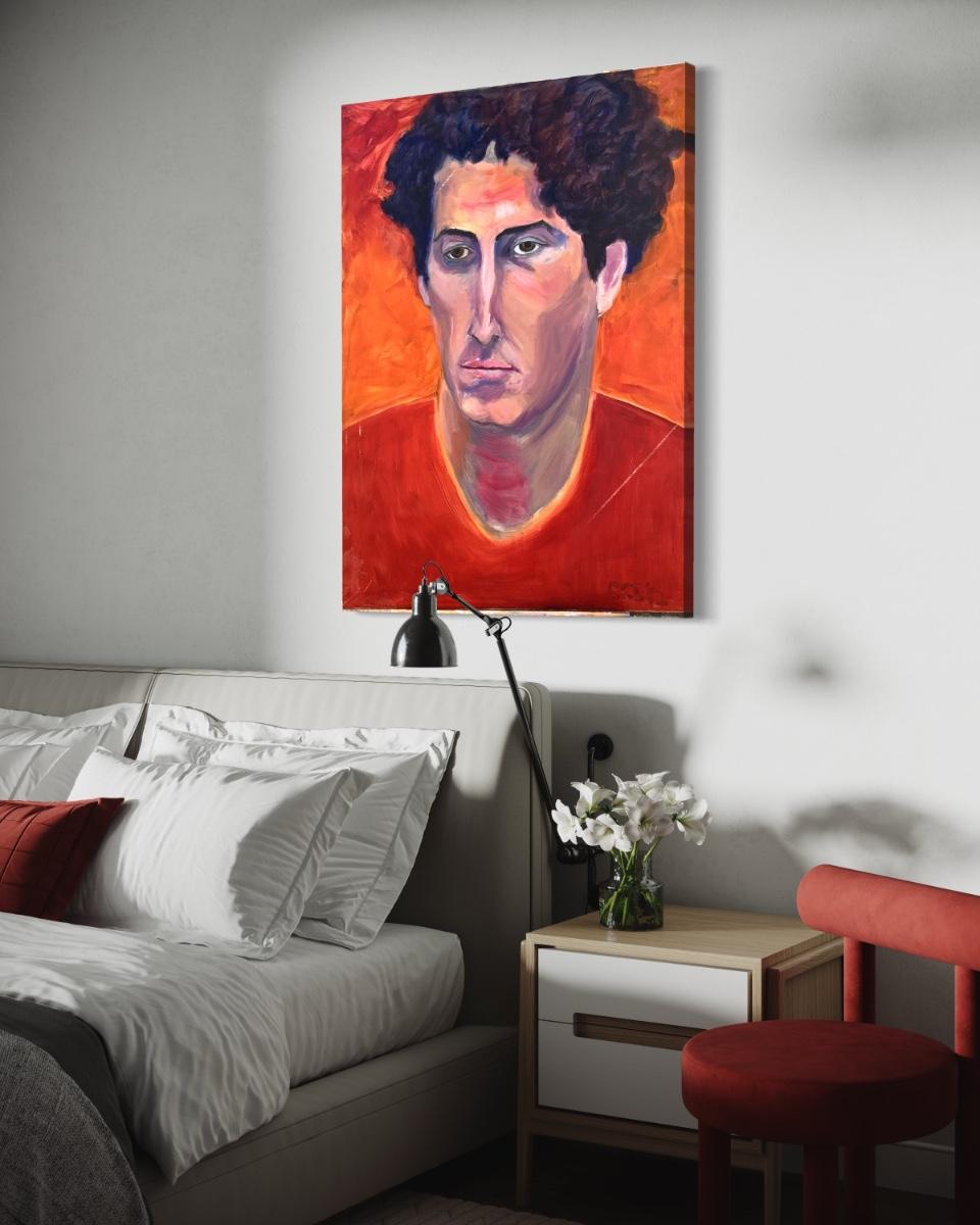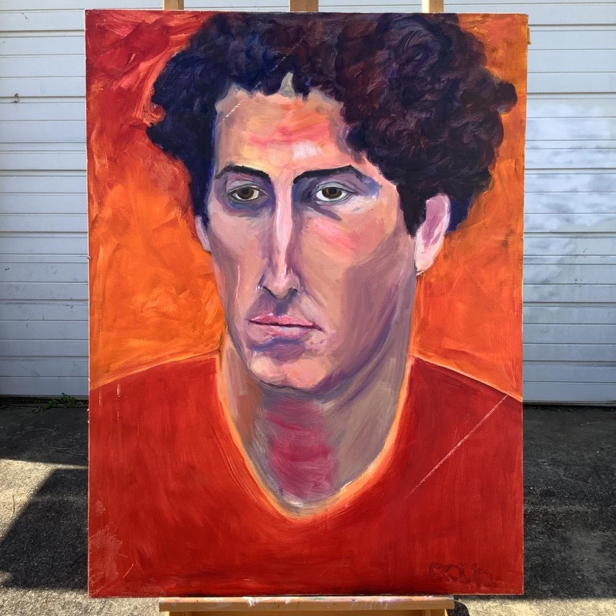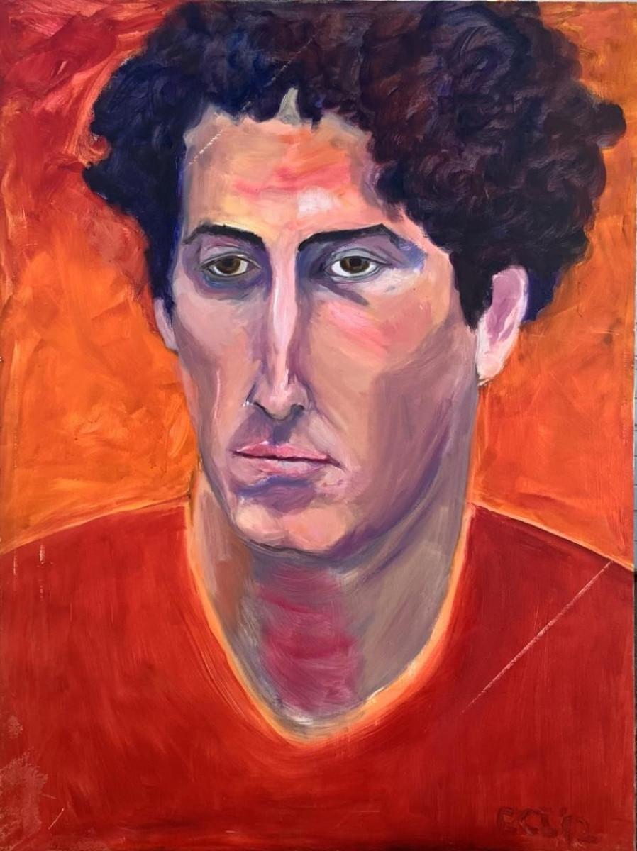 124 "Mark" Curly Hair Red Shirt Man Oil on Canvas Portrait by Ellen Into