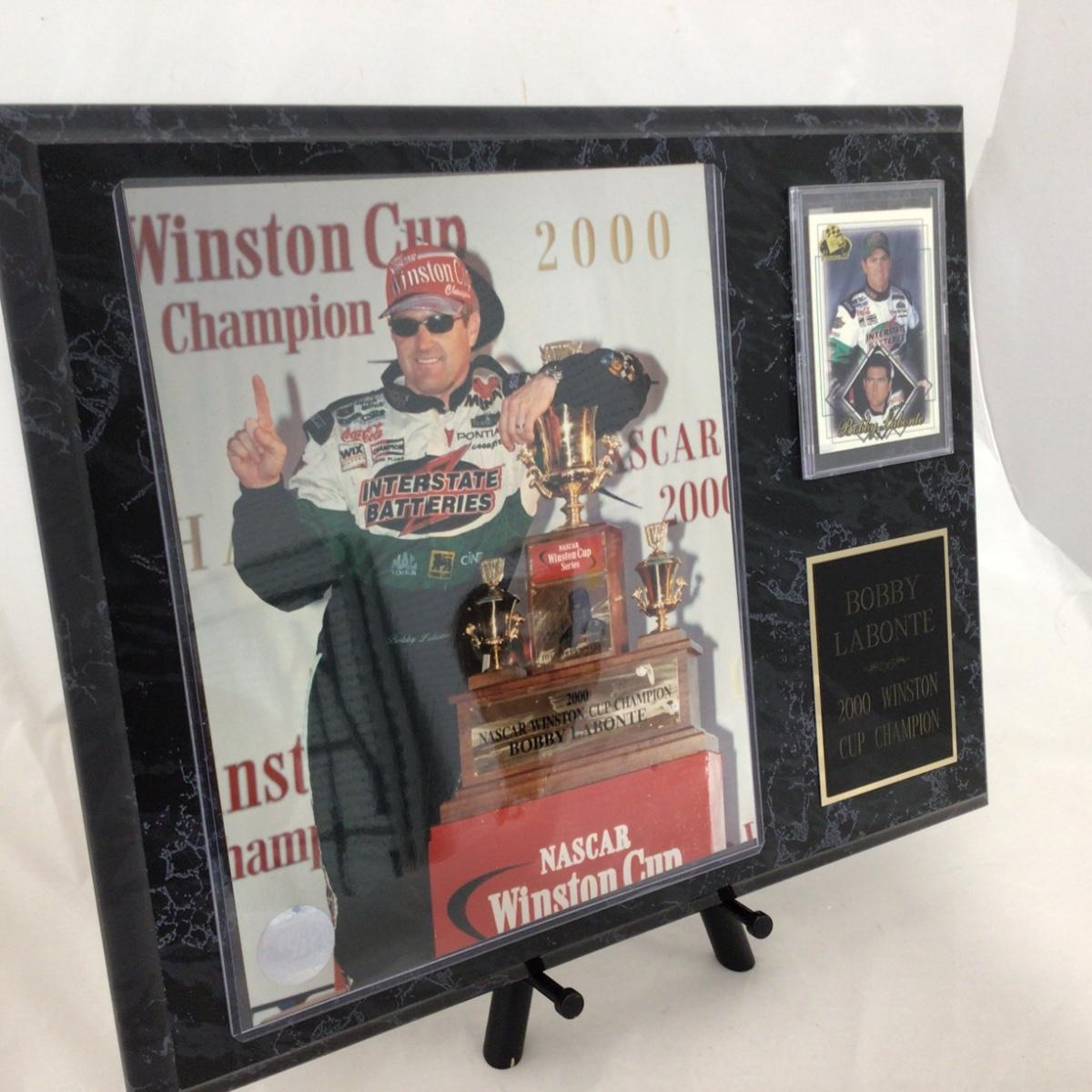 Bobby Labonte plaque 11.5 inches by 15 inches and set of framed collector cards. Please see photos for details and condition. ::: Shipping is available on this lot. If you require shipping you must let us know at the close of the auction. We will coordinate with you after the item has been won. Shipping fees will include insurance up to or exceeding the value of all items being mailed. If you have any questions regarding this lot please contact the auctioneer either via this website, by direct email or by phone. PICK UP TIMES and other important information can be found in the TERMS and DESCRIPTION of the auction. Please take a look for pertinent information. Thanks!