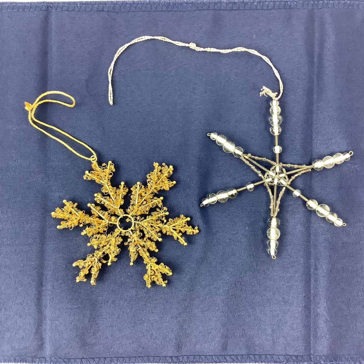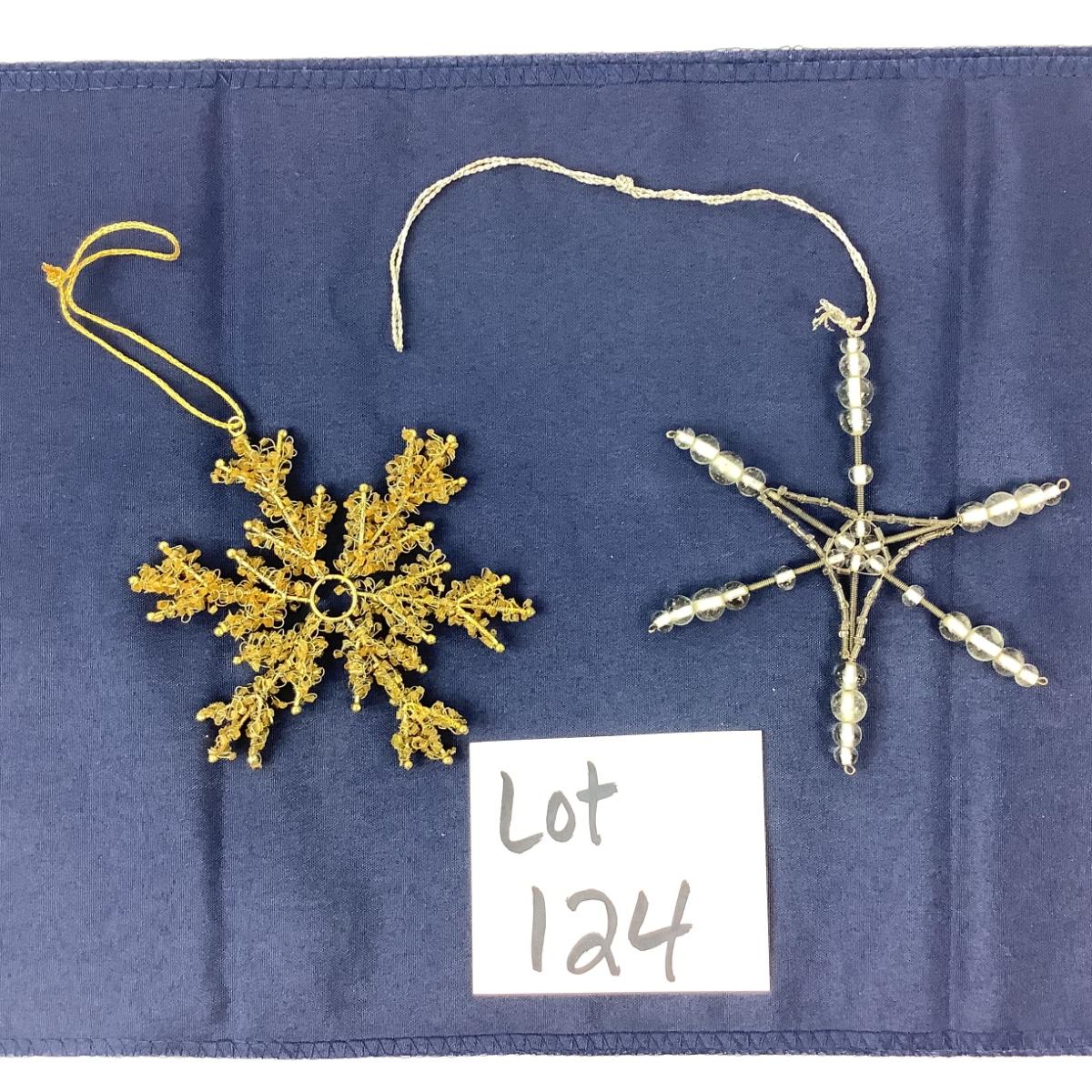 124 Pair of Antique Wire Beaded Snowflake Ornaments