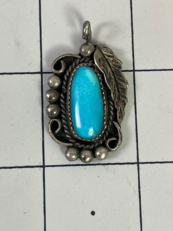 #124 Turquoise Pendant Not Marked needs repair on look 8.4g