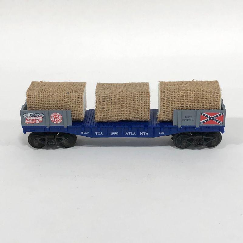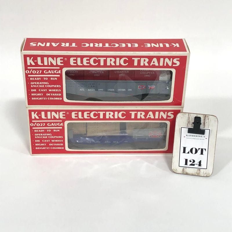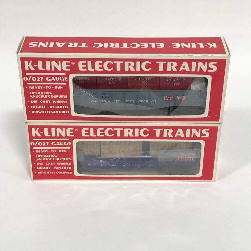 Two K-Line Electric Train Cars, O-Gauge, set to work with all your other trains! Atlanta TCA "Dixie Division" Straw Carrier, 1990 & Atlanta "Dixie Division" Commemorative Box Carrier 1990