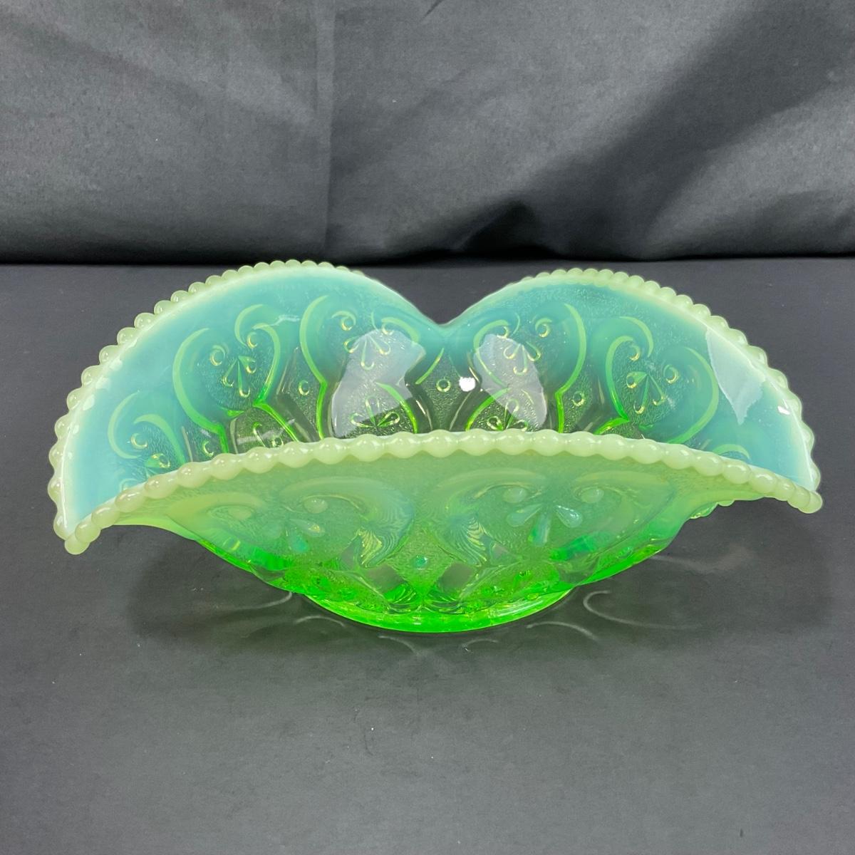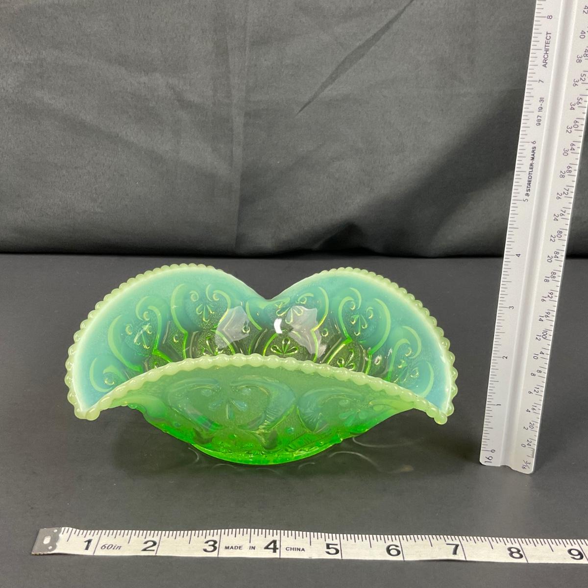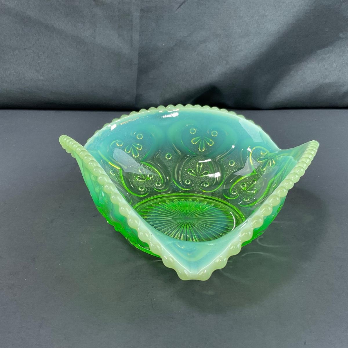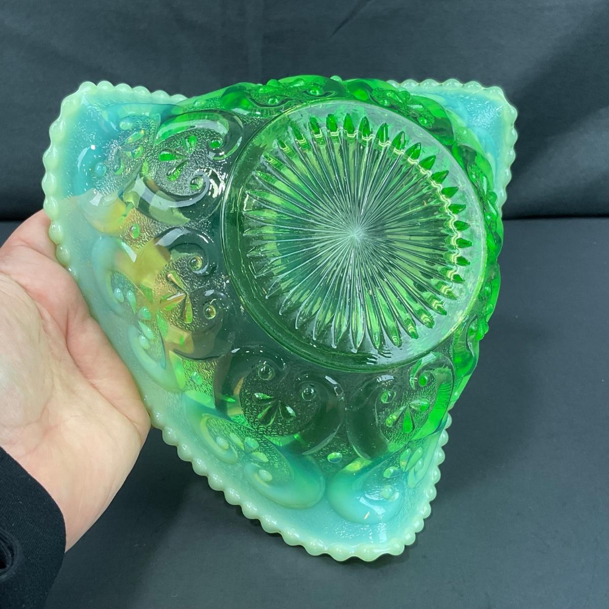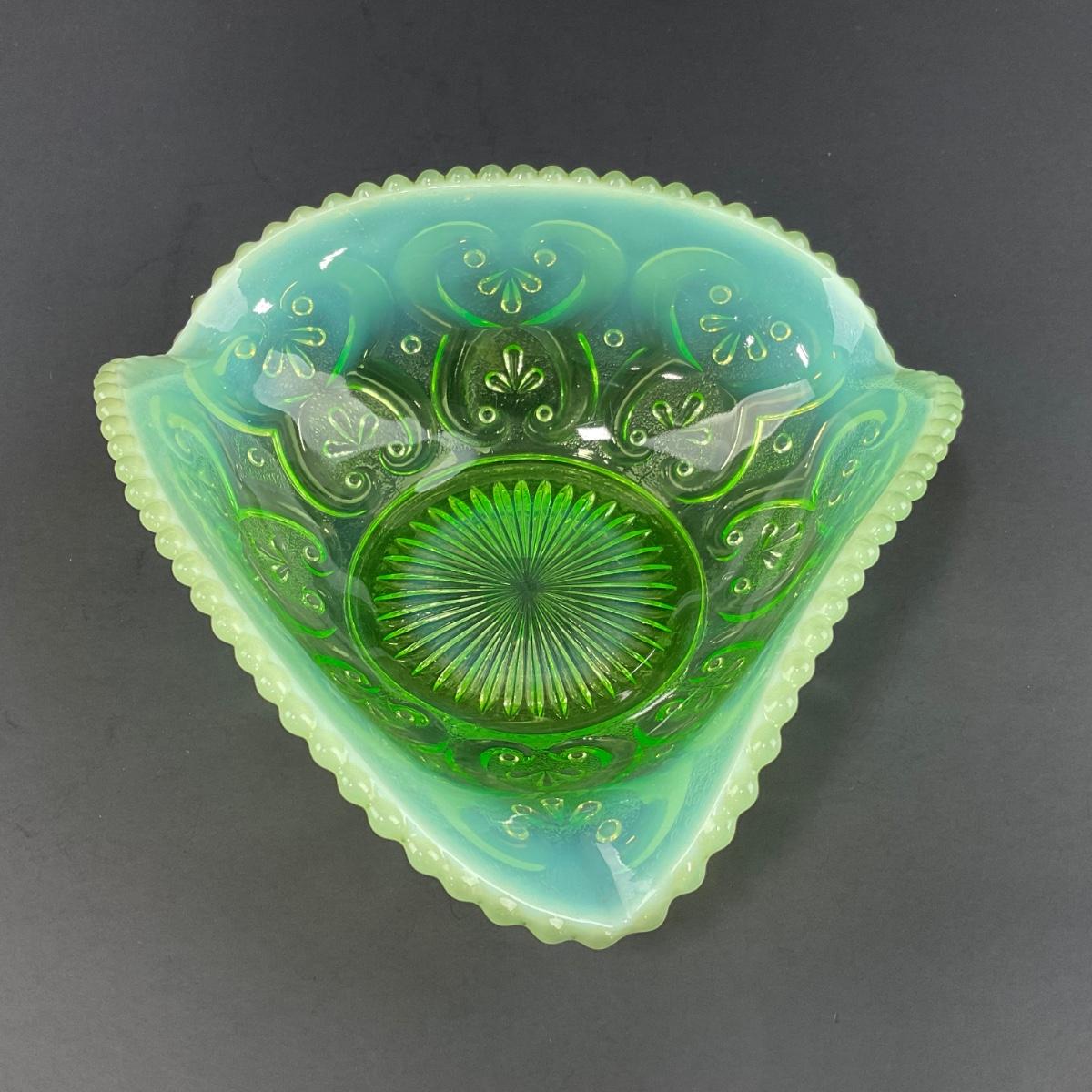 -124- URANIUM | Triangle Green Opalescent Bowl