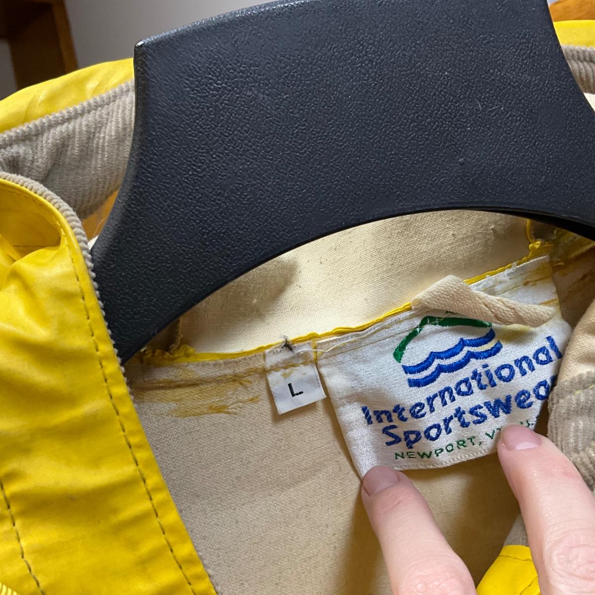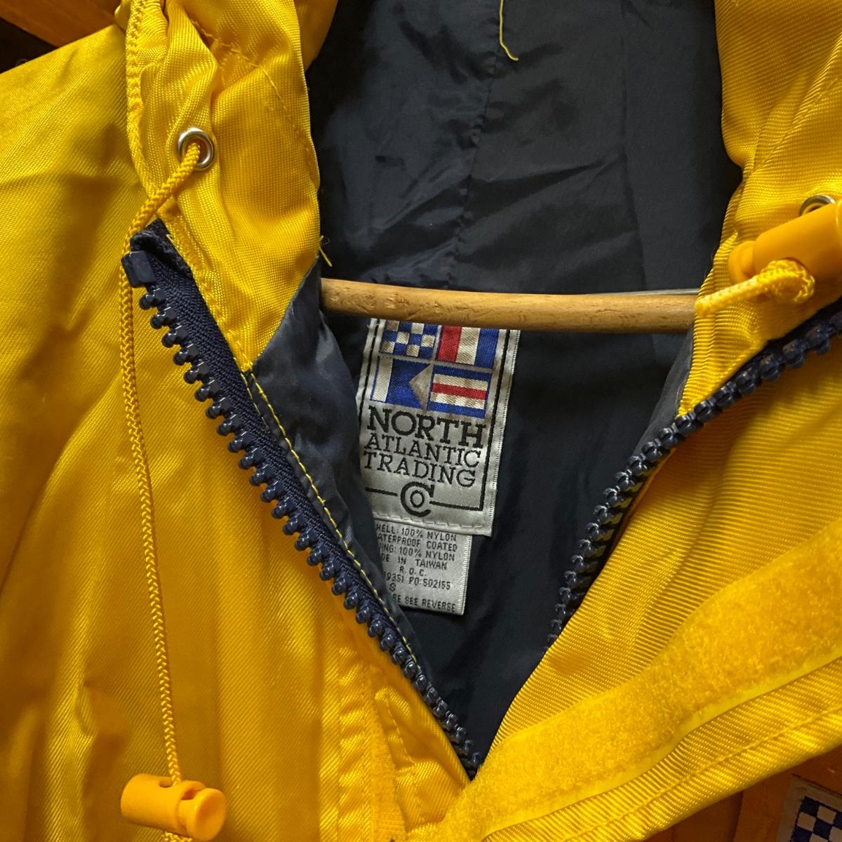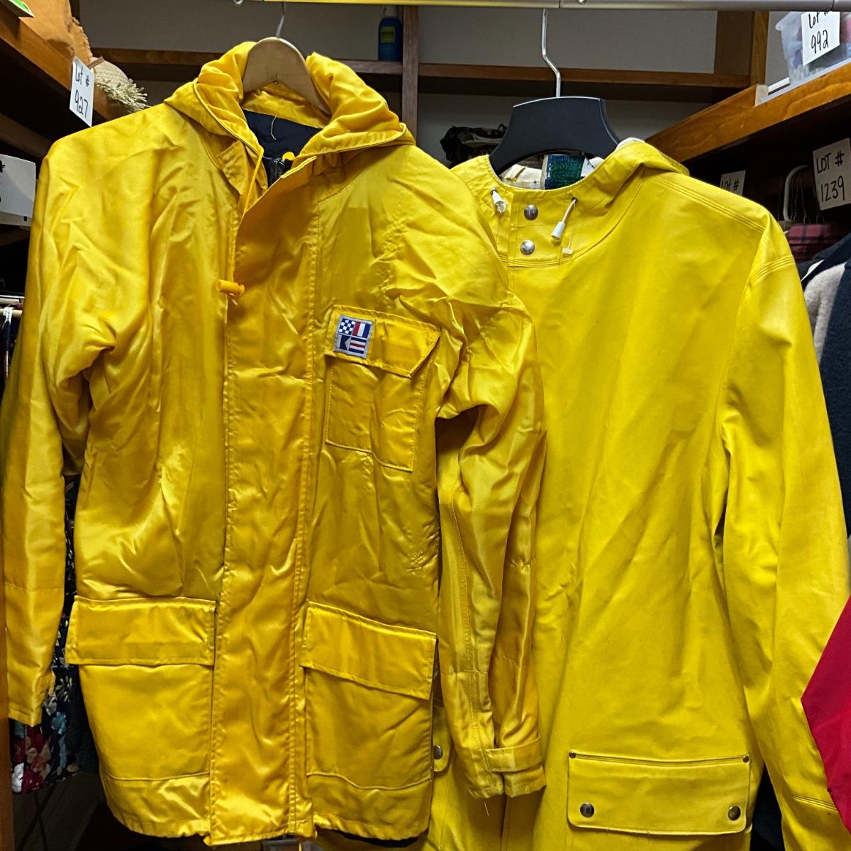 The women’s jacket is size small and is by North Atlantic Trading, the men’s jacket is large and by International Sportswear.