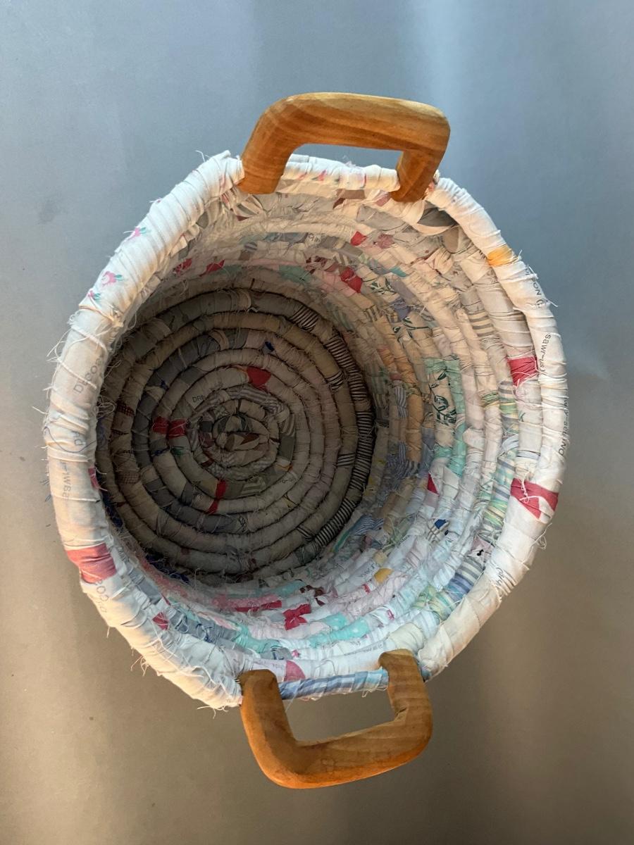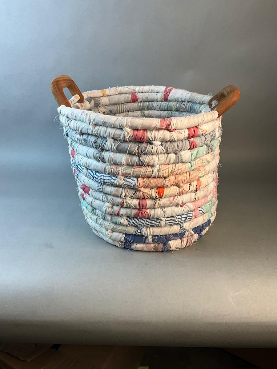 1246 Vintage Rag Rug Basket with Wooden Handles