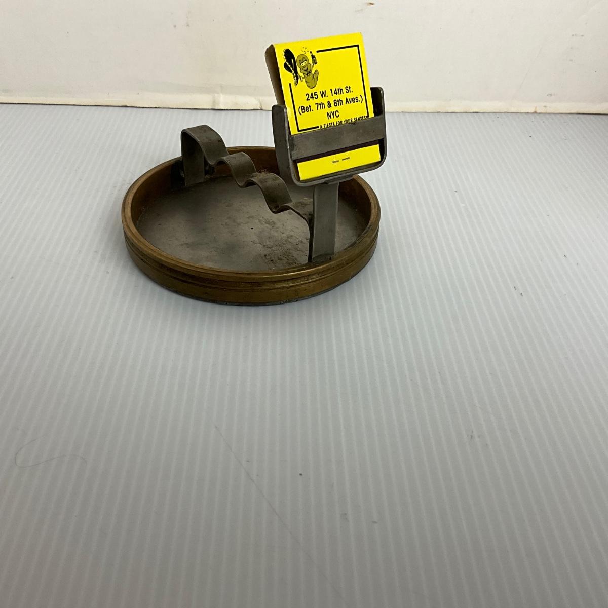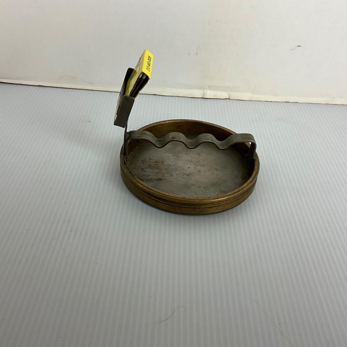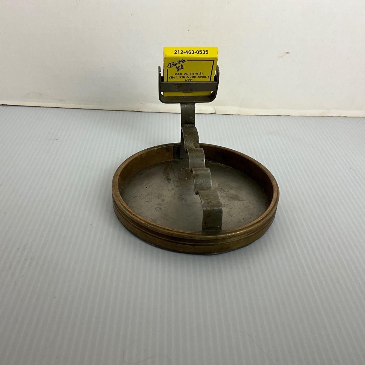 1249 Antique Brass Folk Art Ashtray with Match Holder