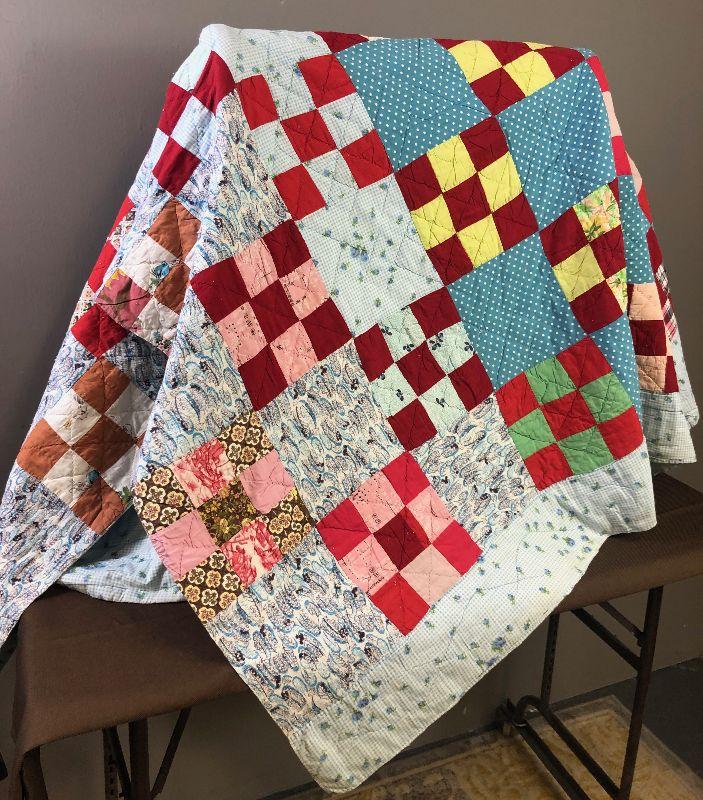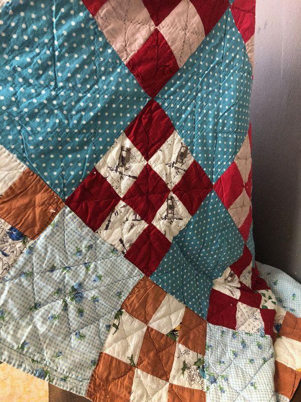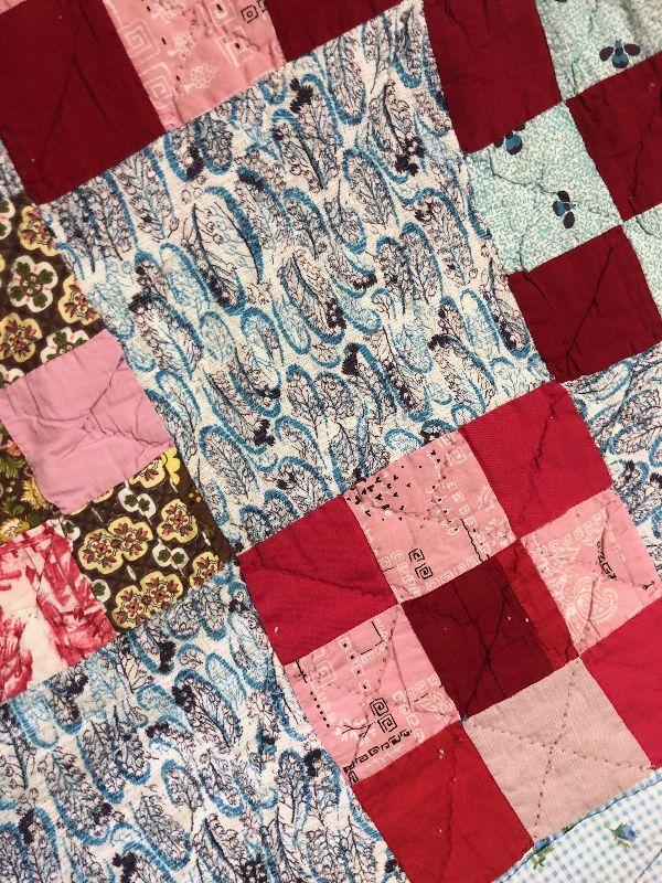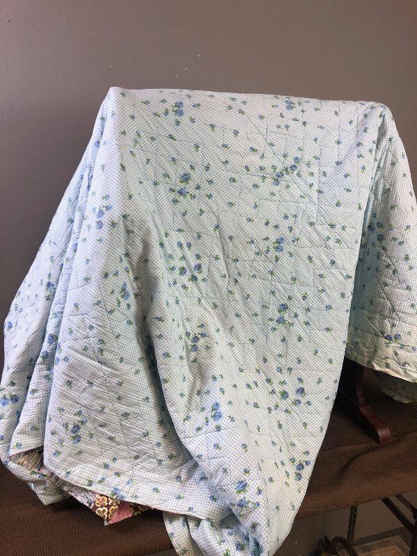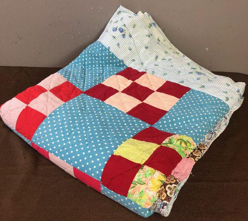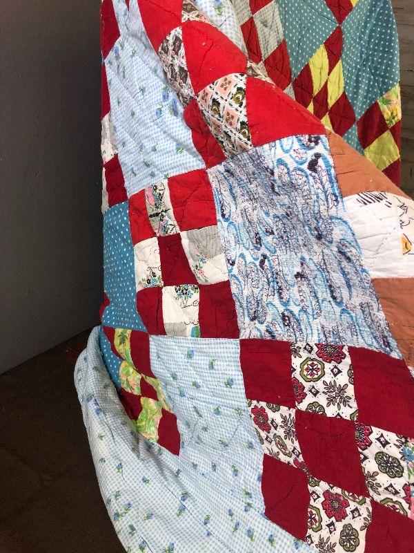 #125 1950's Patch Work quilt:  Red, Blue Floral back