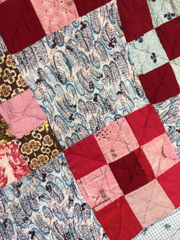 #125 1950's Patch Work quilt: Red, Blue Floral back