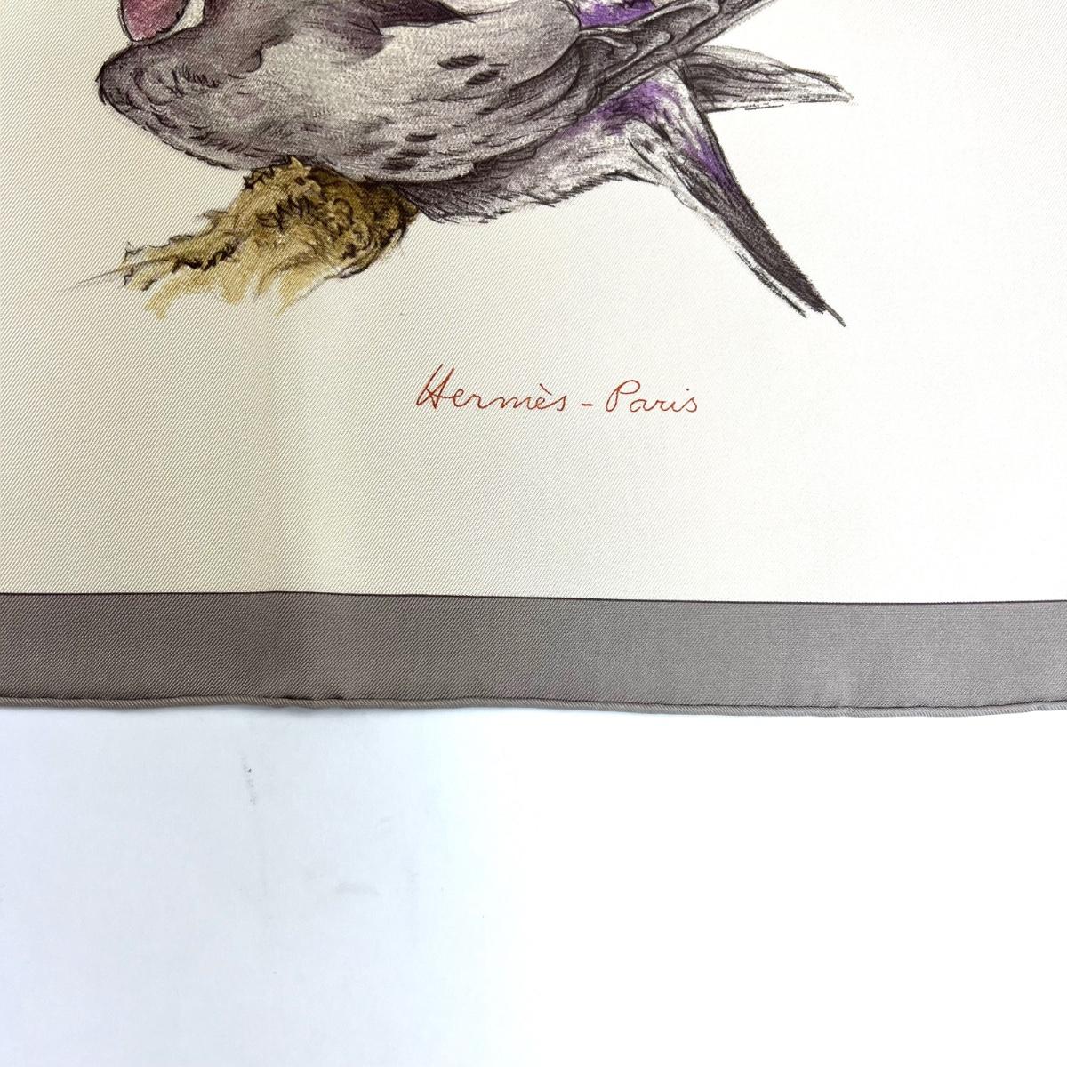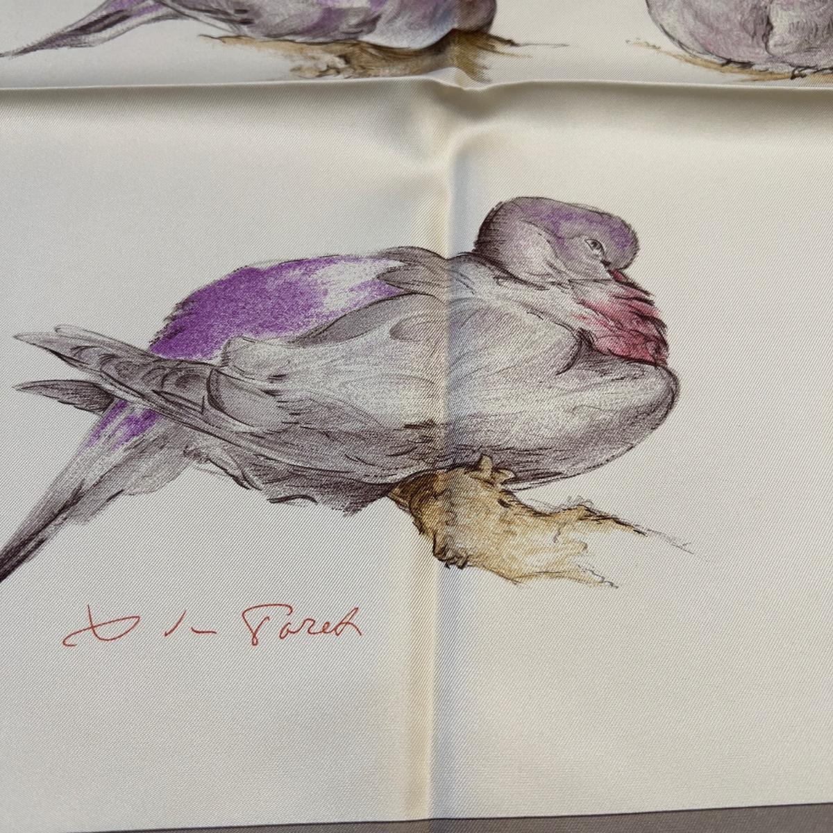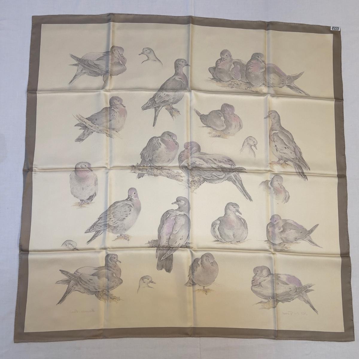 125 RARE Authentic HERMÉS Carre 90 Silk Scarf Tourterelles Doves by Xavier De Poret 1956