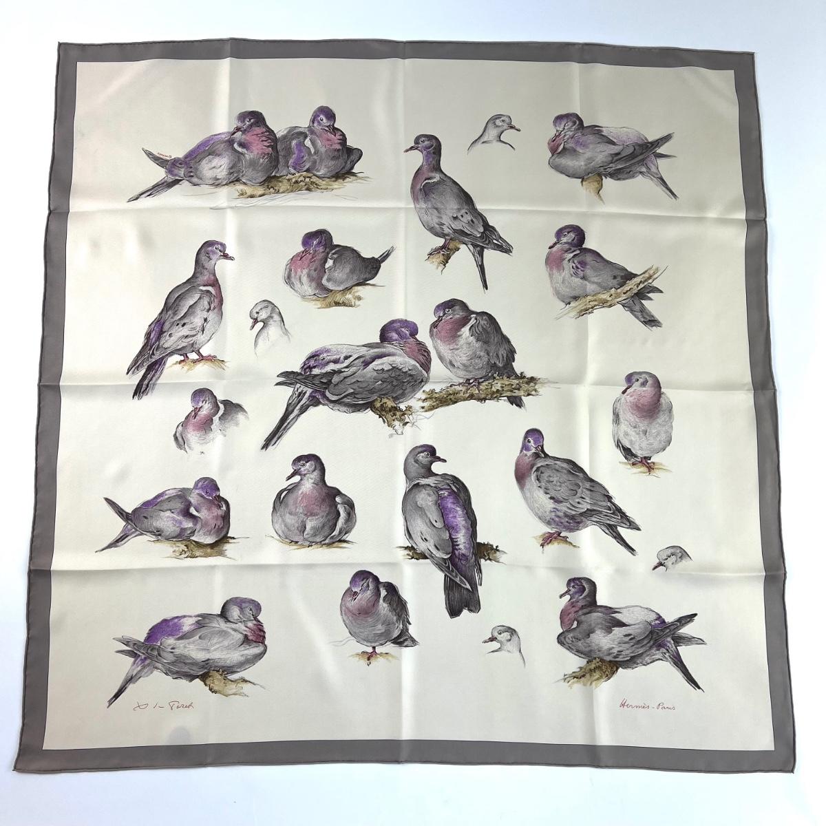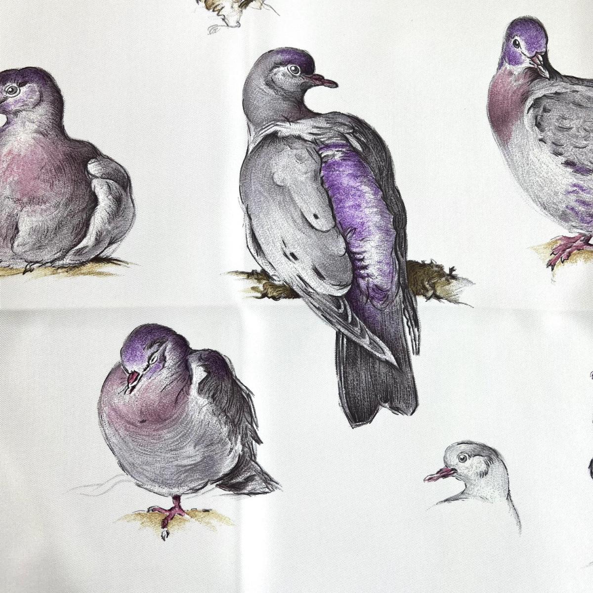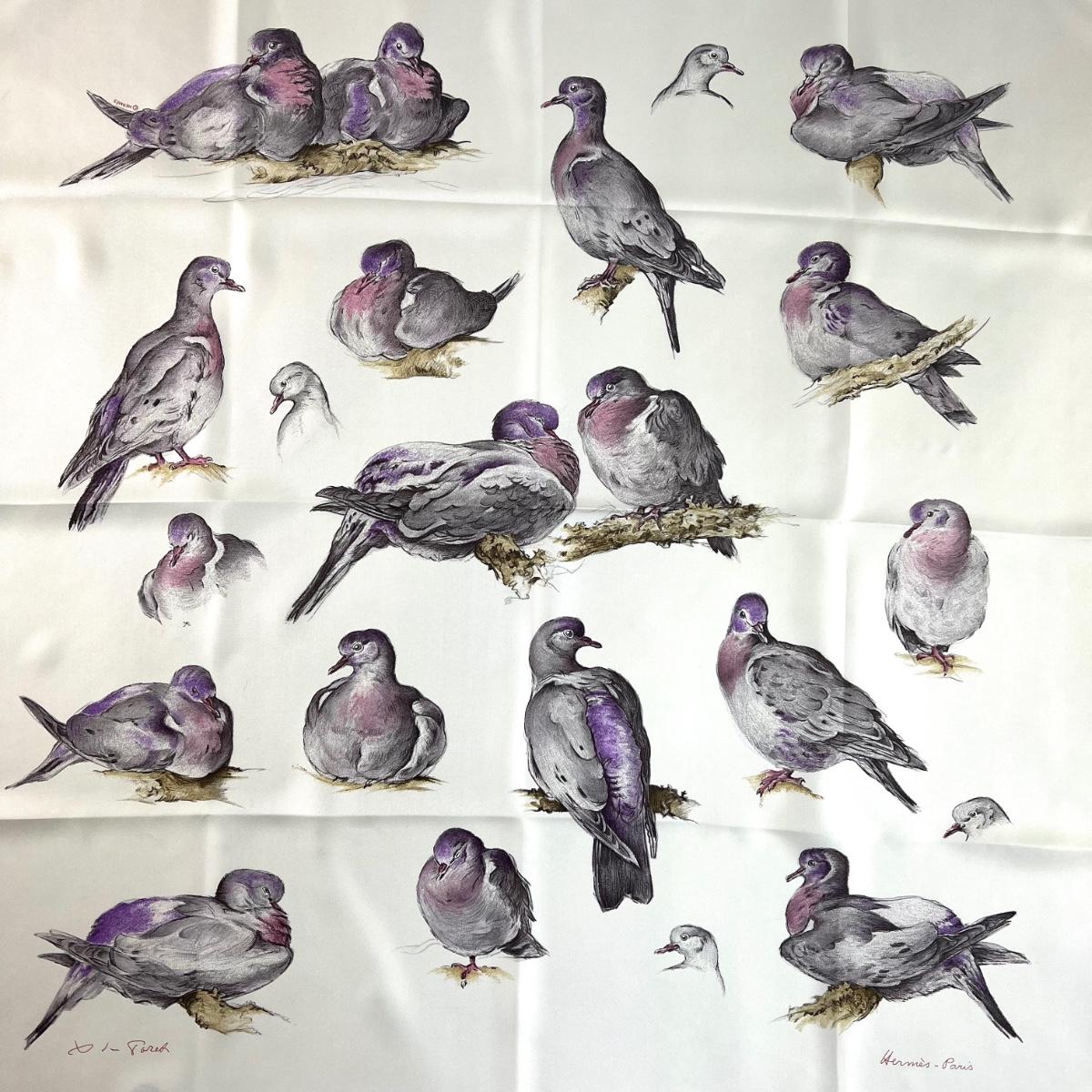 125 RARE Authentic HERMÉS Carre 90 Silk Scarf Tourterelles Doves by Xavier De Poret 1956