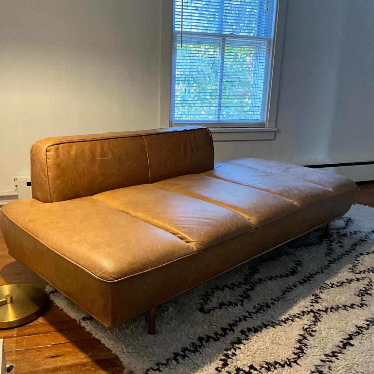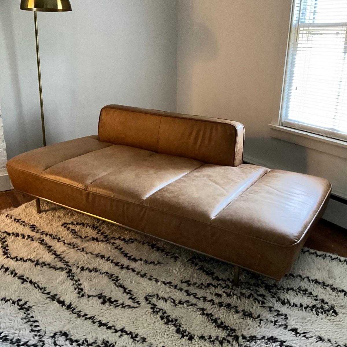 125 CB2 Lawndale Saddle Leather Daybed with Brass Frame