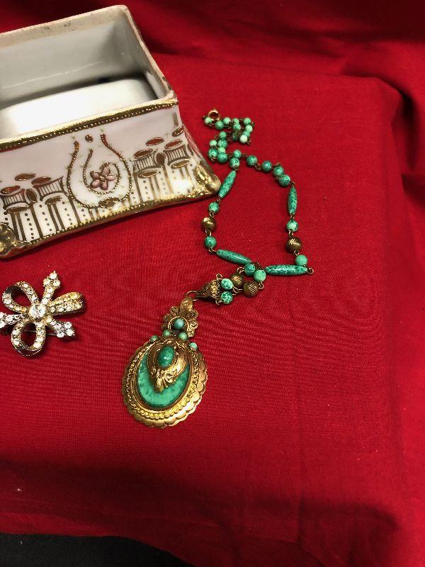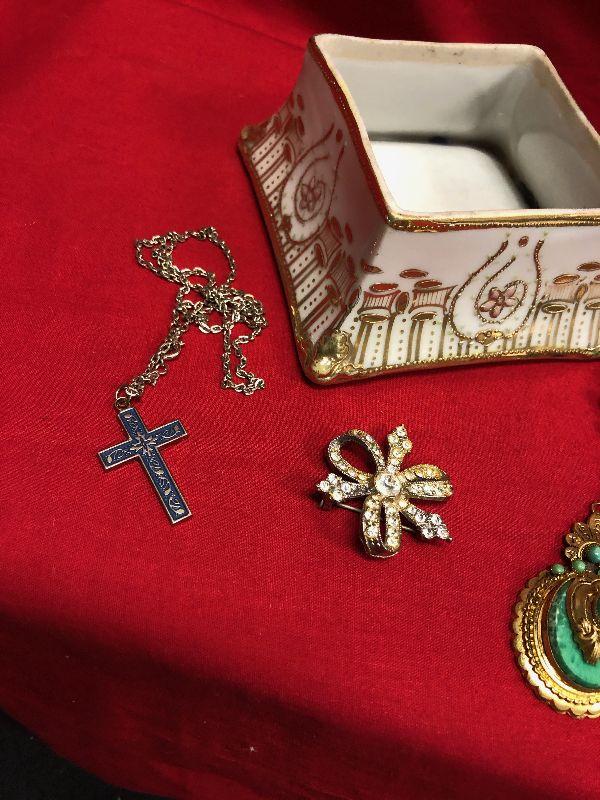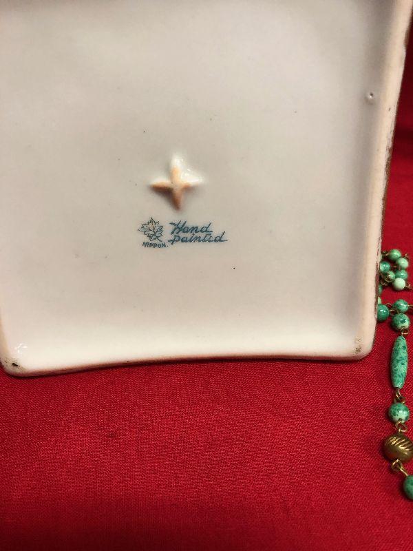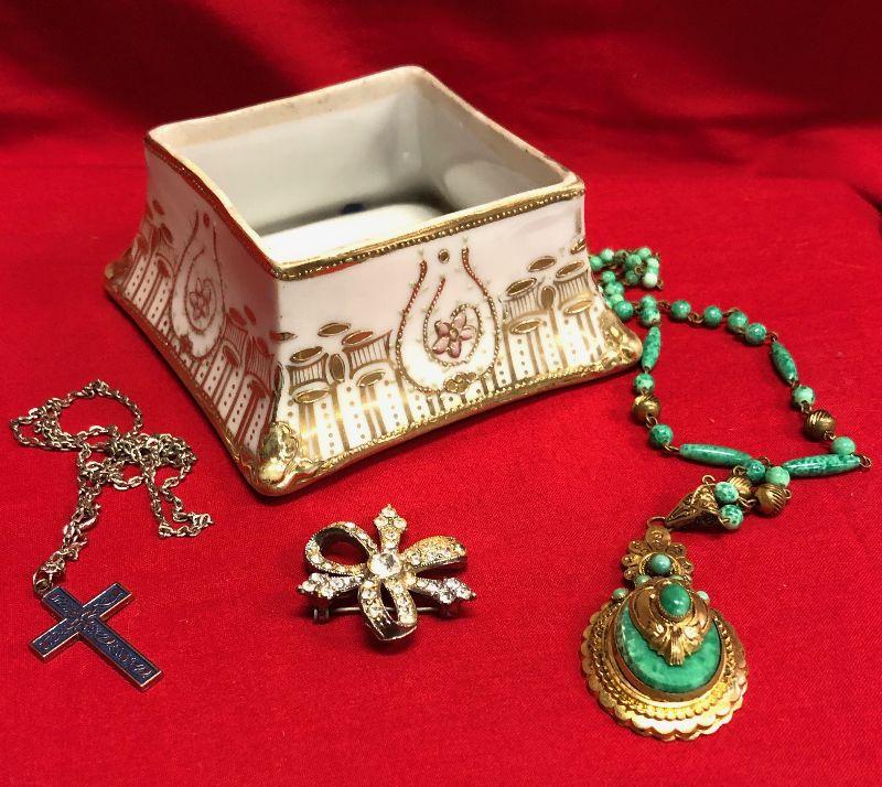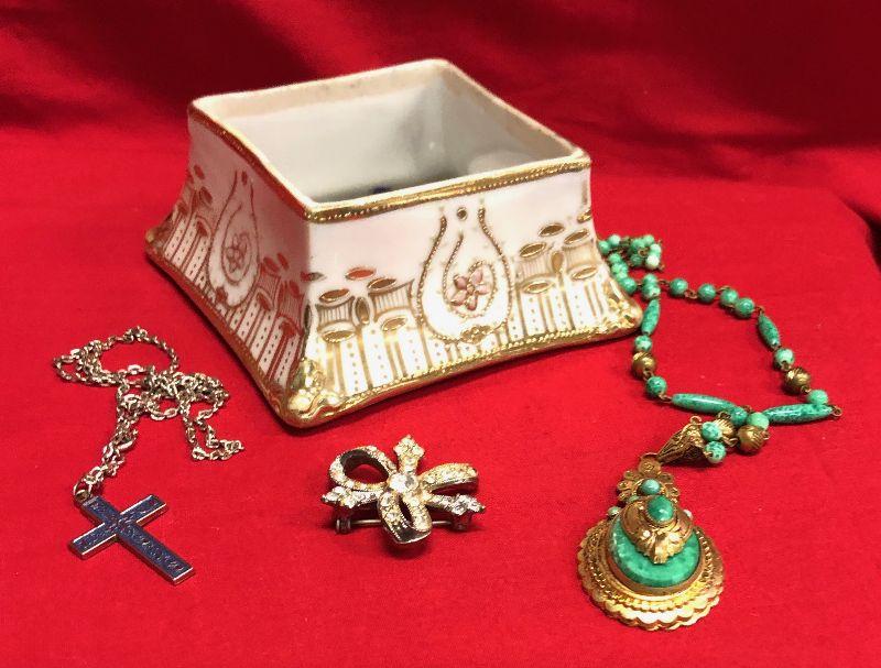 #125 Hand Painted Nippon Dish w/ Antique Jewelry